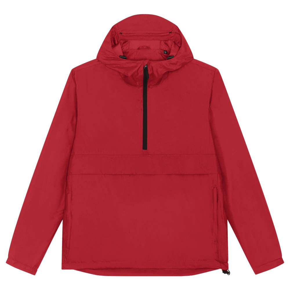 The unisex Speeder STANLEY STELLA jacket offers effective wind protection. Featuring raglan sleeves and a longer back with rounded hem, it ensures optimal comfort. The lower body is adjustable with a plastic stop and an elastic cord. The visor and lined hood, also adjustable, provide additional protection. The inverted nylon zipper is complemented by a chin guard. Piped pockets with extra-large grosgrain pull tabs offer practical storage space. A non-functional flap at the front and back adds a touch of style. Elastic wrists ensure a comfortable fit. A half-moon inside the collar in the main material and an internal zipper at the bottom of the body facilitate access. Decorative interior loop with snap button at the armholes. Composition: 100% recycled polyester. This jacket is ideal for customization with embroidery or by adding your logo, allowing for effective communication of your brand.
