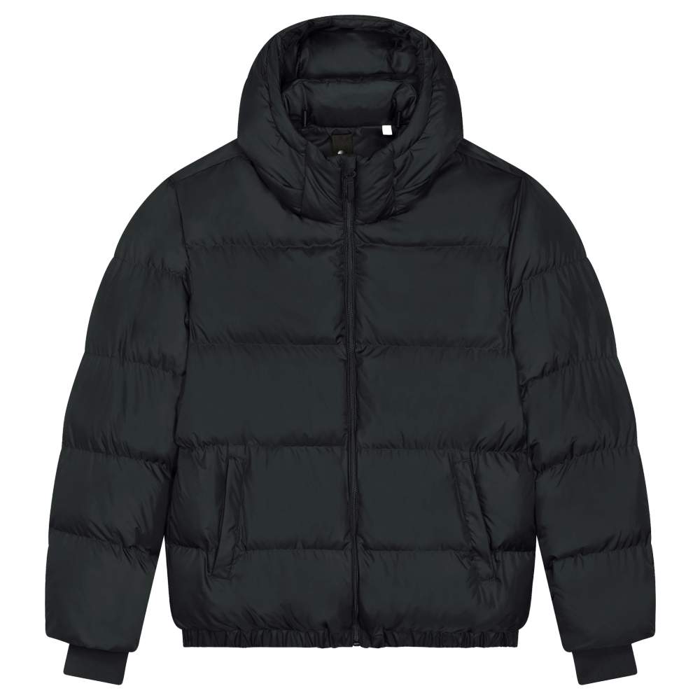 Oversized Stanley Stella puffer jacket. Set-in sleeves. 1x1 ribbed cuffs. Elasticated bottom. Doubled hood with adjustable plastic stop and elastic cord inside. Center front zipper with nylon zipper guard. Zippered welt pockets with extra wide grosgrain tape. Half-moon inside the collar and suspension strap in the main material. Interior zippered pocket on the chest. Interior grosgrain straps for versatile and hands-free use. Decorative interior zipper at the bottom and left side of the chest. Composition: 100% recycled polyester. This model is designed to be customized, notably by embroidery, in order to reflect your visual identity or your company logo.