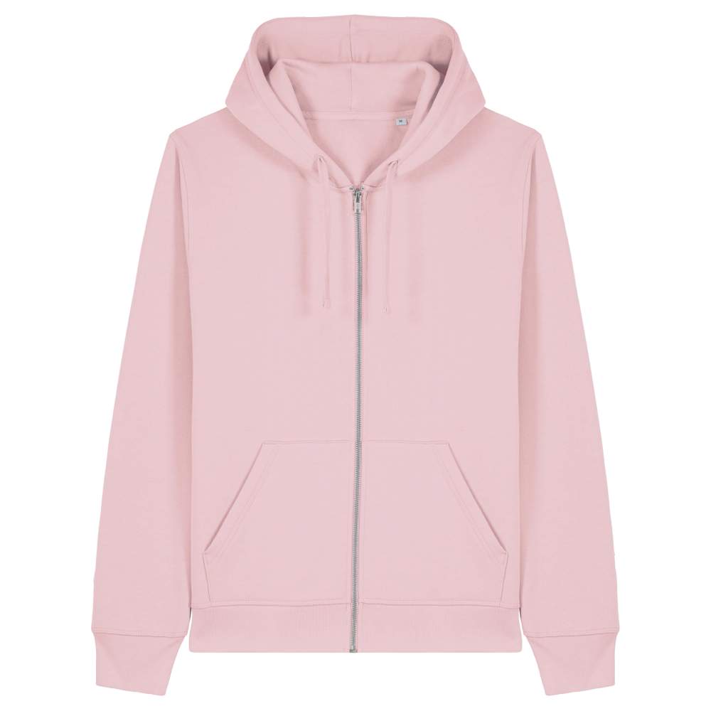 The unisex Iconic Mid-Light zippered hooded sweatshirt offers optimal comfort and great freedom of movement. Its raglan sleeves, lined hood in matching fabric, and ribbed cuffs and hem in 1x1 rib ensure a perfect fit. The kangaroo pocket with flatlock stitching and the visible metallic zipper on the front add a touch of style. The embroidered eyelets for buttonholes and the chevron clean stripe inside the collar and zipper testify to attention to detail. The three-needle flatlock stitching on all seams ensures increased durability. This sweatshirt is composed of 85% organic combed and carded cotton and 15% recycled polyester, thus offering an environmentally friendly product. It is possible to customize this sweatshirt by embroidery with your logo or your visual, for effective and original communication.