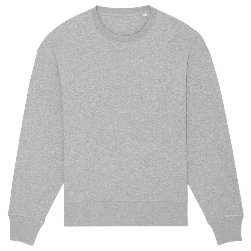 The unisex casual Radder round-neck sweater offers optimal comfort. Its set-in sleeves and 2x2 ribbed collar, cuffs, and hem ensure a durable fit. The inner clean band with chevron pattern and inner half-moon in main material add a touch of quality. The single stitching at the neckline and double stitching at the armholes, cuffs, and hem reinforce its robustness. This garment is made of 85% organic combed and carded cotton and 15% recycled polyester, combining comfort and environmental respect. It is possible to customize this garment with embroidery or your logo.