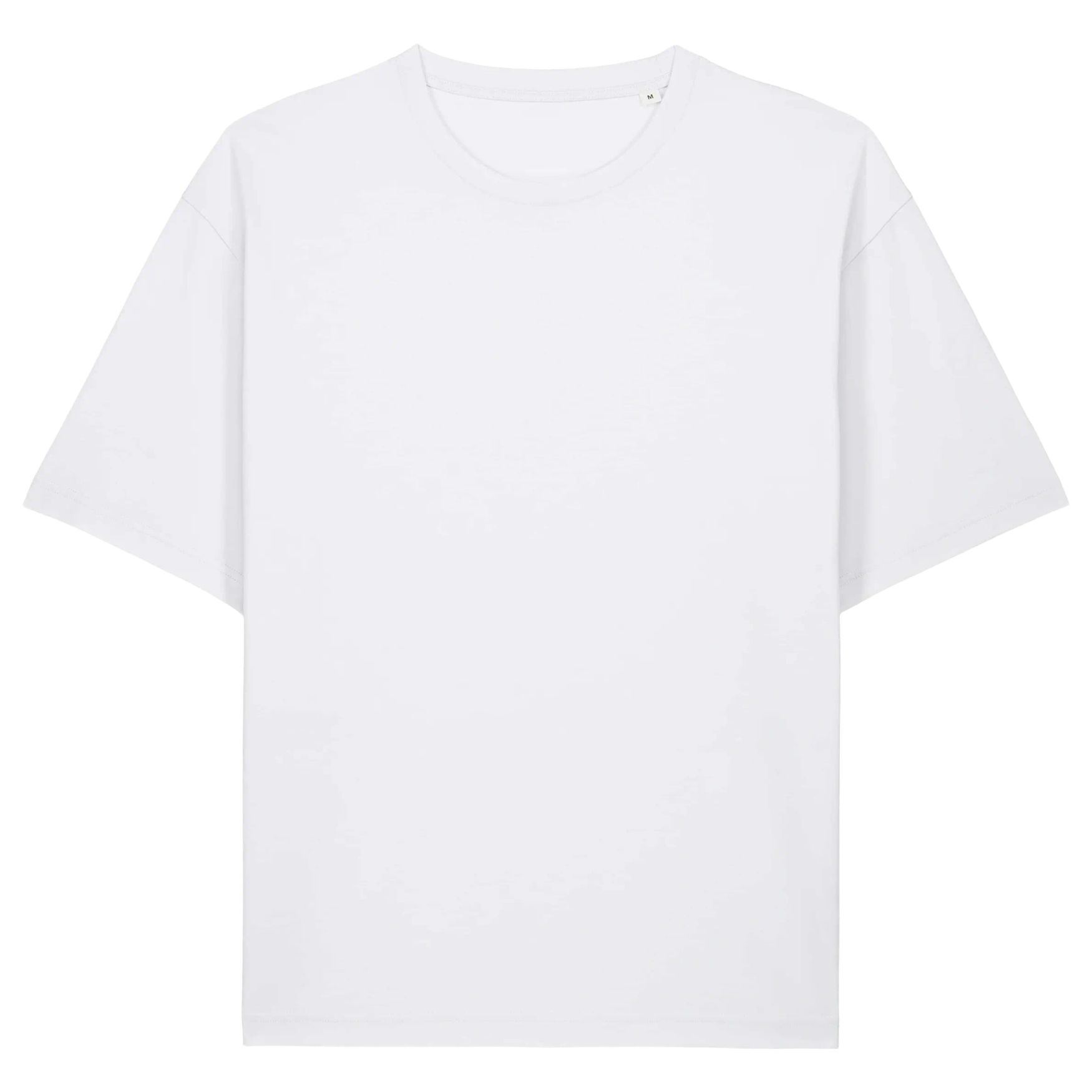 The Breezer tee-shirt is a casual unisex mid-lightweight model made of 100% combed organic cotton. It features set-in sleeves, a 1x1 ribbed collar, and a clean tape in the same fabric inside the back collar. Double-needle stitching is present at the cuffs and hem.