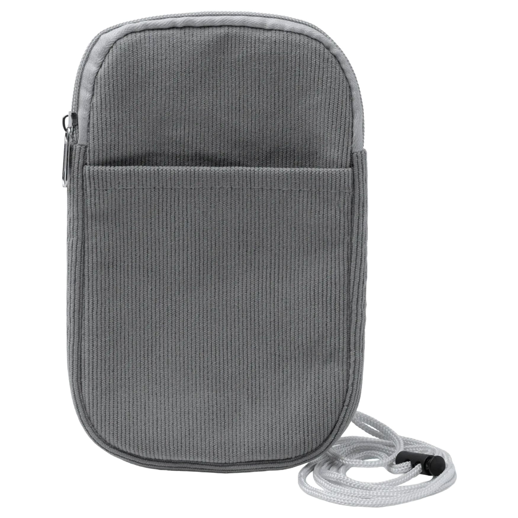 The BUSNIX is a corduroy case for tablet and smartphone. It features a main compartment with matching zipper closure and an outer pocket. A matching carrying strap accompanies the case for ease of use.