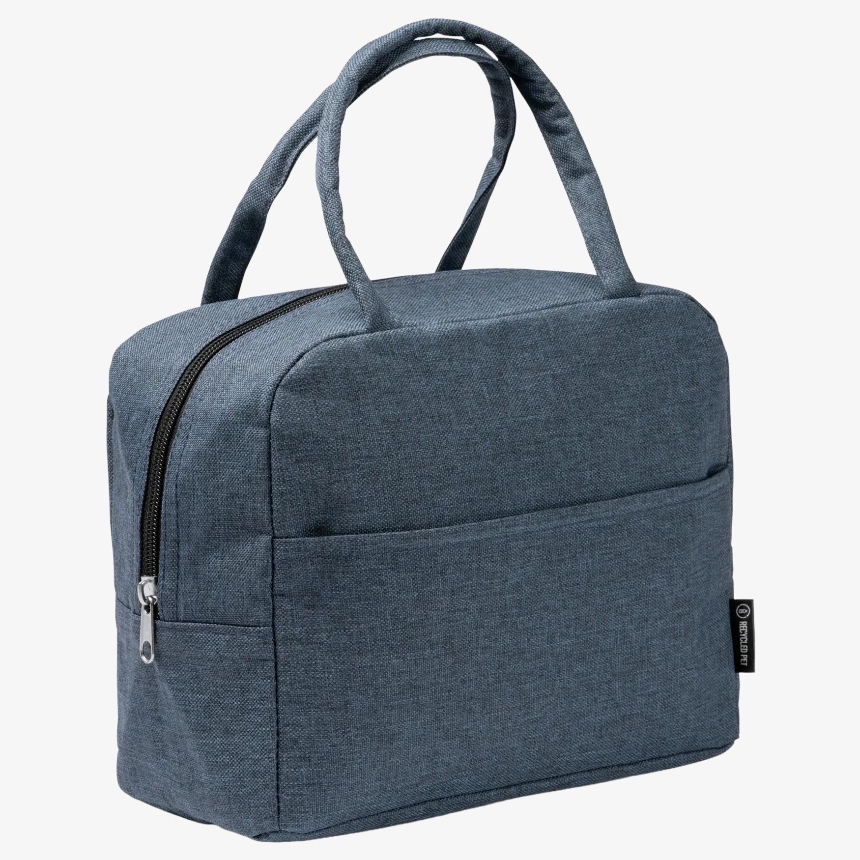 The insulated RPET 600 D bag includes an insulated interior to maintain the temperature of contents. It has a front pocket and padded round handles ensuring a comfortable grip.