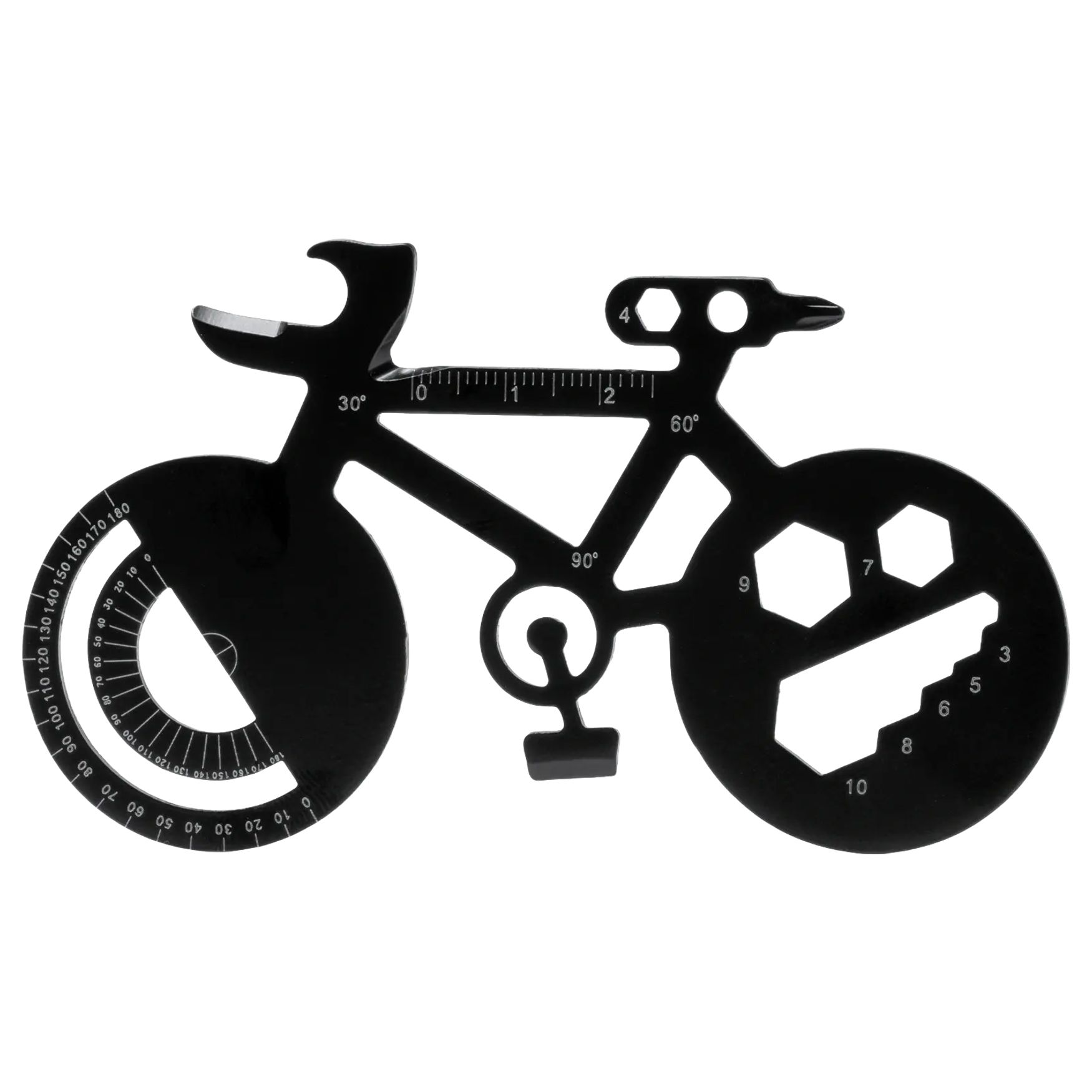 The Nibali multifunction tool in stainless steel, bicycle-shaped, includes 11 functions for everyday uses: can opener, angle guide, screwdriver, wrench, rulers. Dimensions: 10.7 x 0.2 x 6.2 cm.