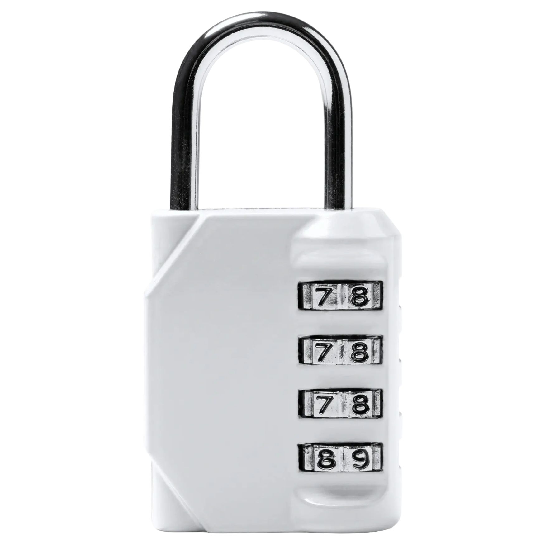 The Milvia padlock uses a 4-digit combination to reduce key use. Stainless steel body and shackle, compact format for daily use.