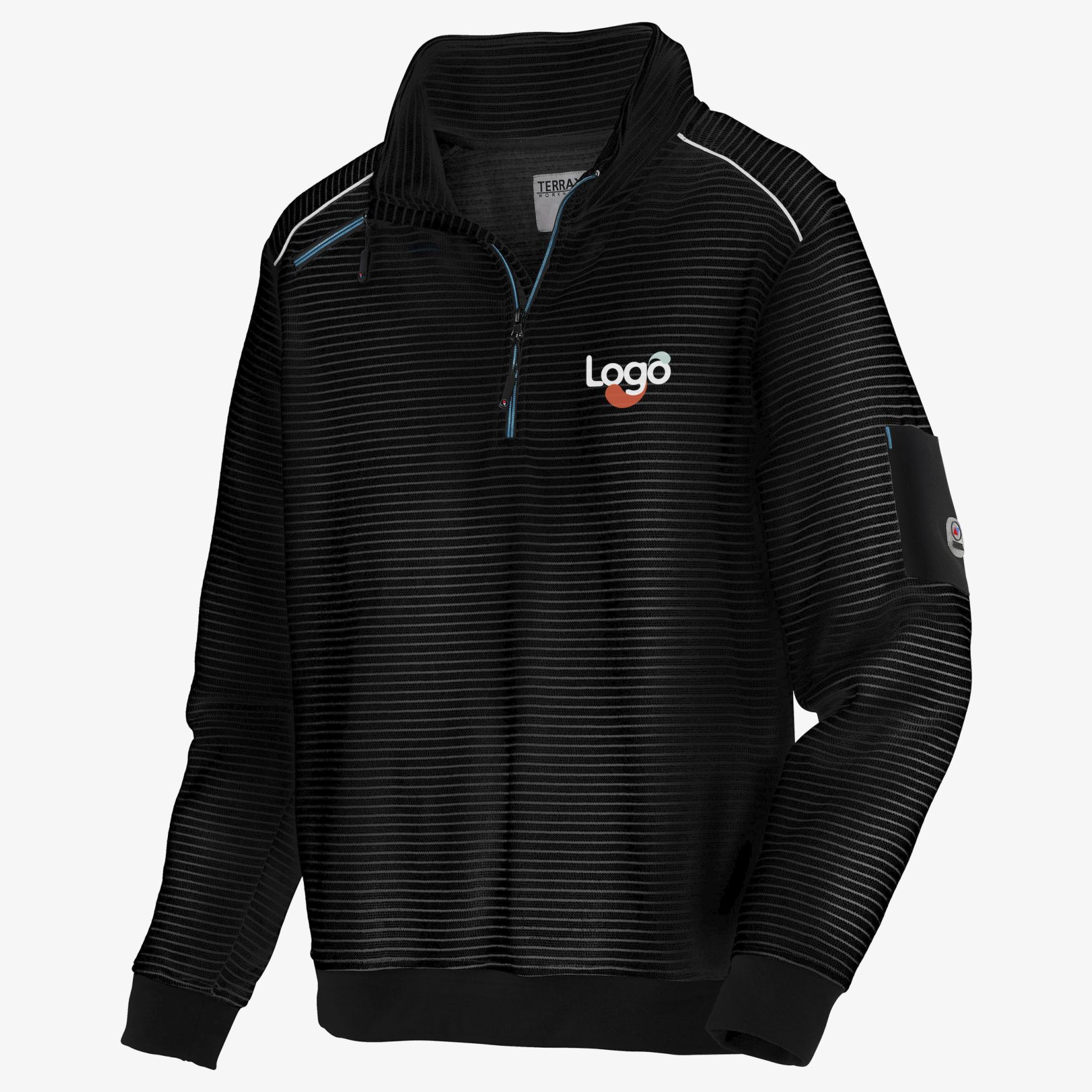 High neck Sweat offering comfort and functionality for various professional activities. Practical pocket on the sleeve for easy storage. Contrasting details for a modern look. Terrax Workwear label. This garment is ideal for daily use and can be customized with embroidery to reflect the identity of your company or team.