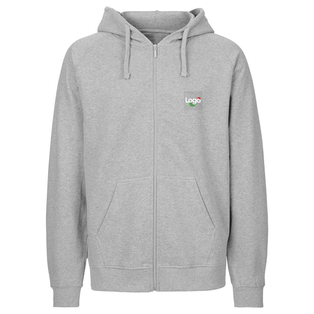 Thick hooded sweatshirt with kangaroo pocket and front zip closure. Soft double-lined hood with adjustable flat cords and interior neck tape. Features a double-ribbed cuff and waistband. Made from 300 ring-spun combed cotton. 100% organic cotton in conversion. This sweatshirt offers an ideal surface for expressing your creativity with embroidery customization. Add your logo, an inspiring message, or a unique design for an authentic and personalized look.