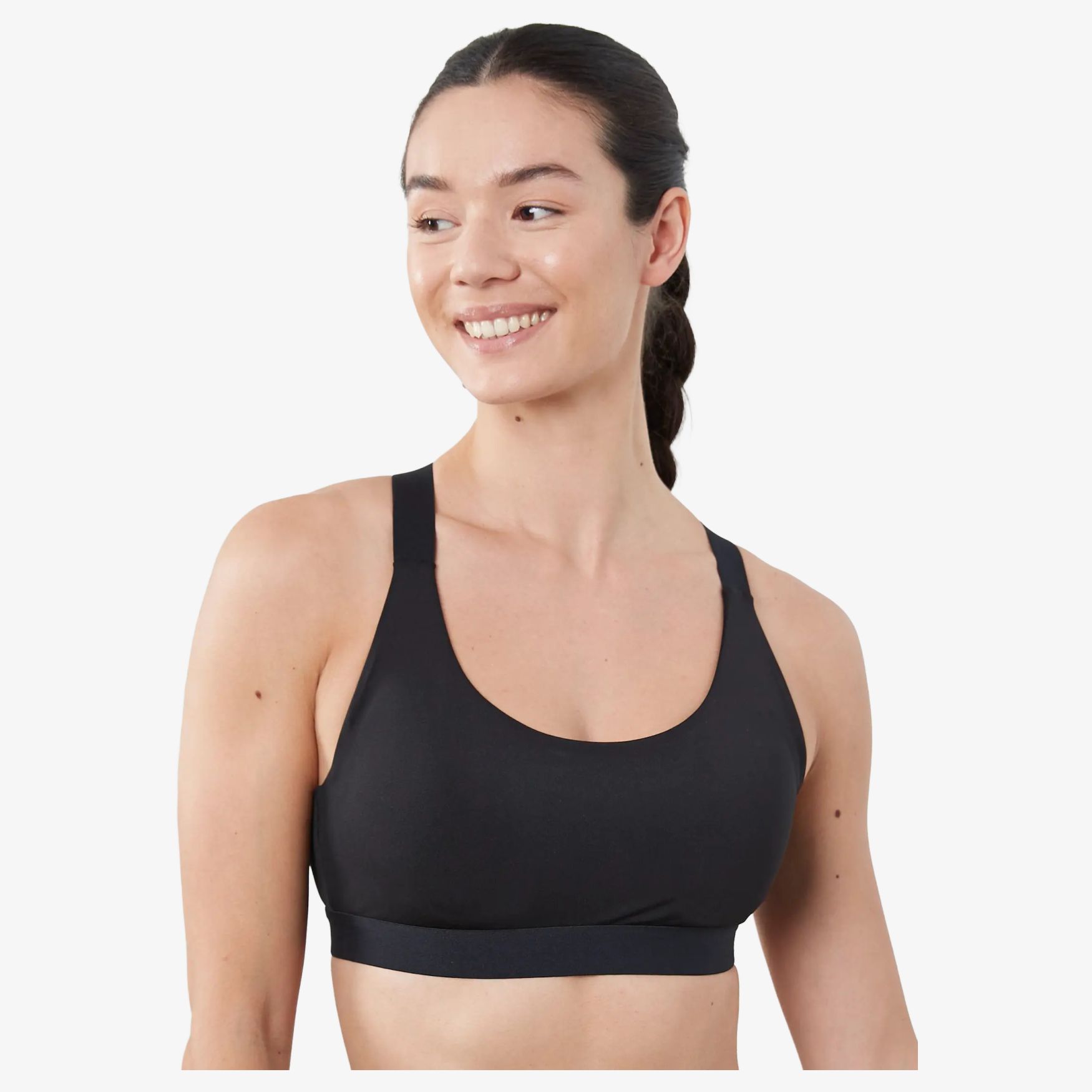 The Core bra Medium sports bra provides medium support for sports activities. Elasticated waistband, elasticated crossed straps at the back and metal back closure. Tear-away label.