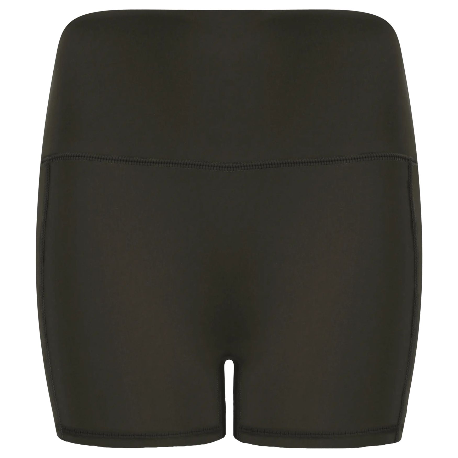 The short cycling shorts feature an elastic high waist and stretch fabric designed to follow movements. It has a side pocket and side seams with no seam on the front.