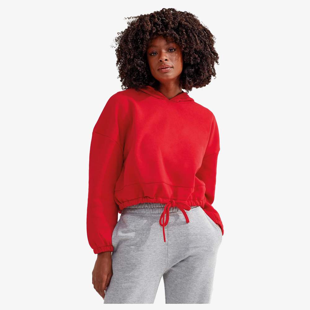 The collection of classic comforts would not be complete without the short hooded oversize TriDri sweatshirt. Dropped shoulders, relaxed oversize fit with drawstring at the waist, allowing you to adjust the fit. This product has no branded neck label. Removable or loop clothing labels. The internal seam label contains important information about the product. A second label containing brand information can be cut out. Please note that old stock may contain a non-removable branded label. Composition: 60% cotton, 40% recycled polyester; heather gray: 90% cotton, 10% viscose.