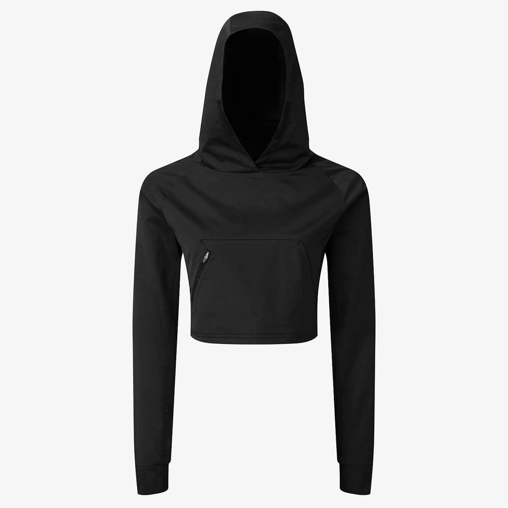 The women's TriDri® crop jacket offers a refined design and an ideal look for the gym or everyday wear. This lightweight and short jacket features a front kangaroo pocket with a zip closure to store your personal belongings. It has an ultra-smooth finish, half-elastic cuffs, and a hood with details. This product does not include a branded neck label. The garment labels are removable or with a loop, and the inner seam label contains important product information. A second label containing brand information can be cut out. Please note that old stock may contain a non-removable brand label. Composition: 100 % polyester. Customization possible with embroidery for a unique look.