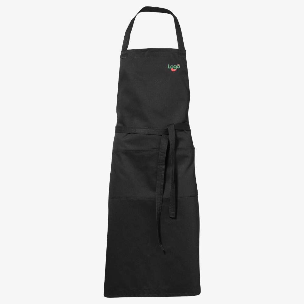 Whether equipped or not with a logo, protecting your nice clothes during cooking is easy with the Viera apron. The apron consists of a thick and robust polyester and cotton twill, while remaining soft and comfortable to wear. The two front pockets offer a quick way to store kitchen essentials. The belt is one meter long . Dimensions: 100 x 70 cm.Composition: 65% polyester, 35% cotton. This apron is customizable, allowing the addition of your logo or visual by embroidery for effective communication.