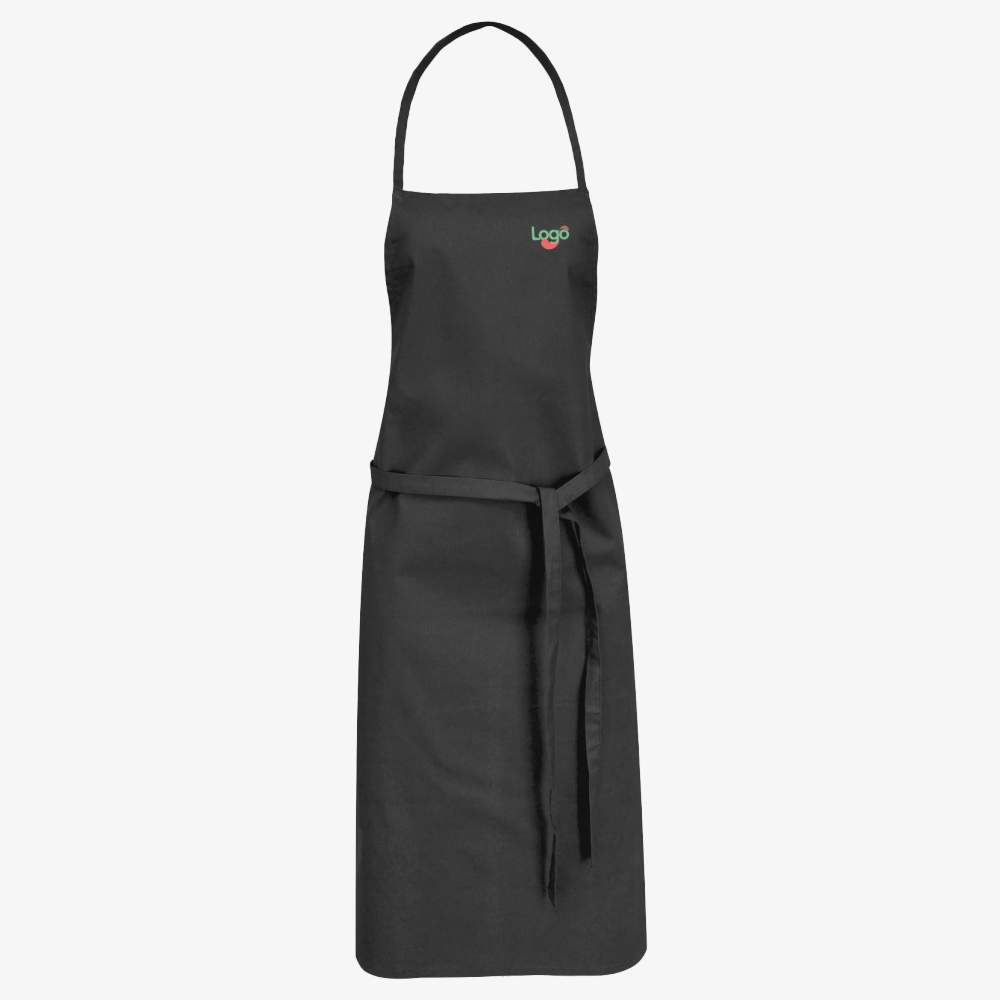 The Reeva kitchen apron is a neat and simple apron. With or without printed logo, the apron protects clothes at all times during cooking. The apron is composed of 100% cotton, making the apron thick and robust while also soft and comfortable to wear. This apron is customizable, allowing the addition of your logo or visual in embroidery. Dimensions: 65 x 90 cm Composition: 100% cotton.