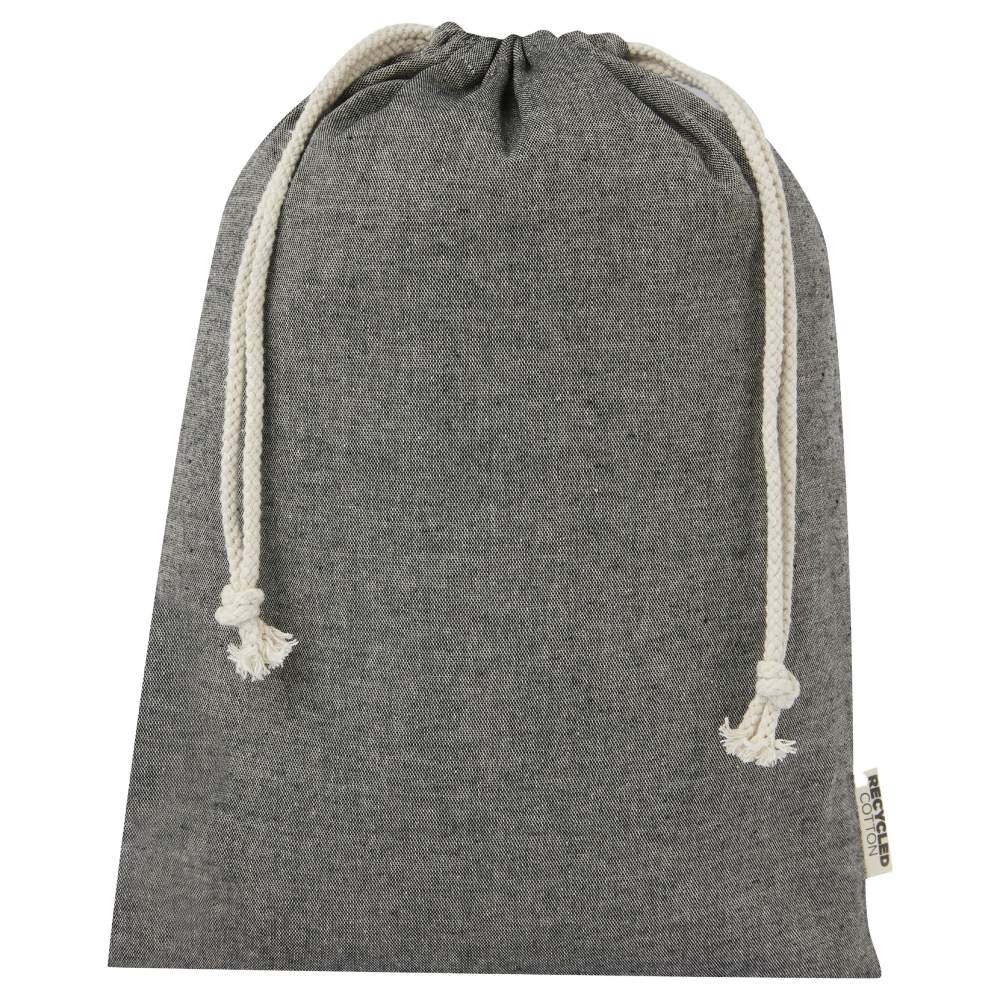 Gift bag made of recycled cotton, designed for transporting and storing various items. Its design includes a cotton cord closure ensuring the security of the contents. This bag may have slight color variations due to the specifics of the recycled cotton manufacturing process.