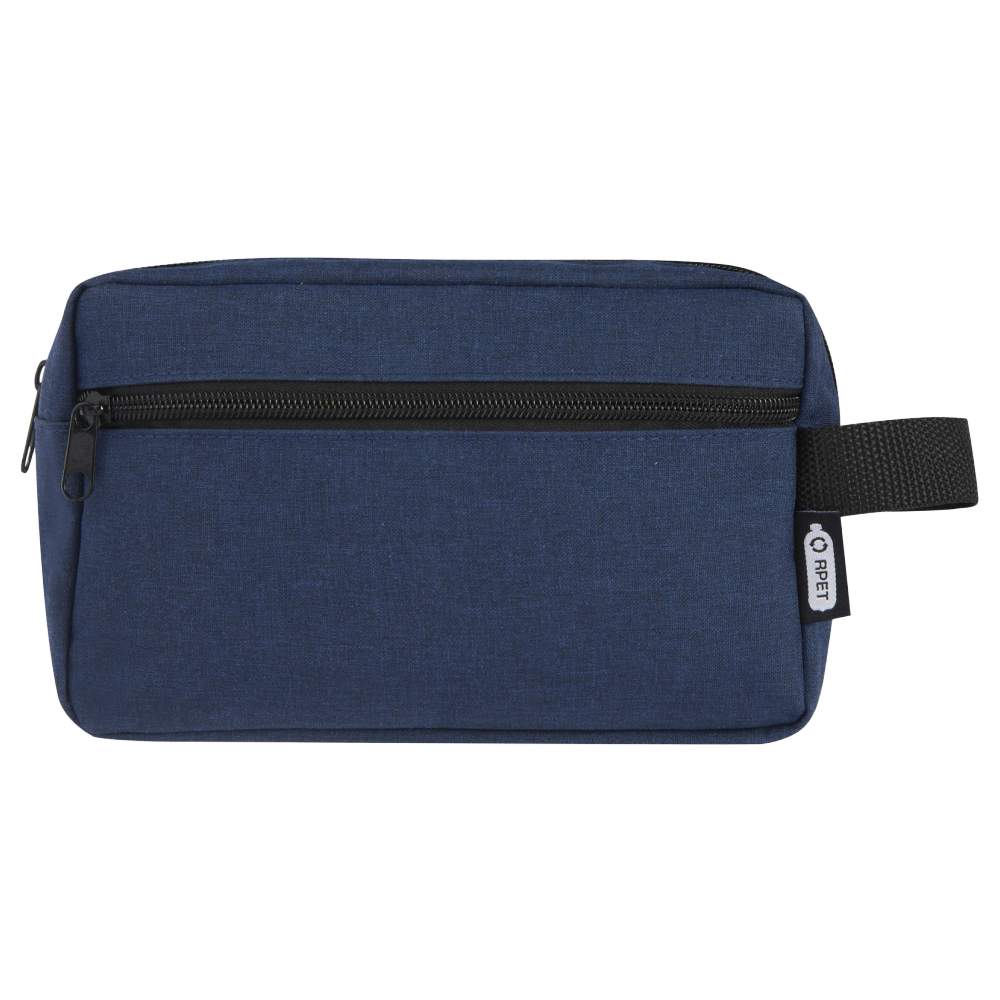 The Ross toiletry bag is designed to carry your hygiene and cosmetic items while traveling. Made of recycled polyester, it combines functionality with environmental respect. It features a zippered main compartment, offering practical storage space, as well as a front pocket for easy access to small accessories. A strap loop allows you to easily attach it to your luggage.