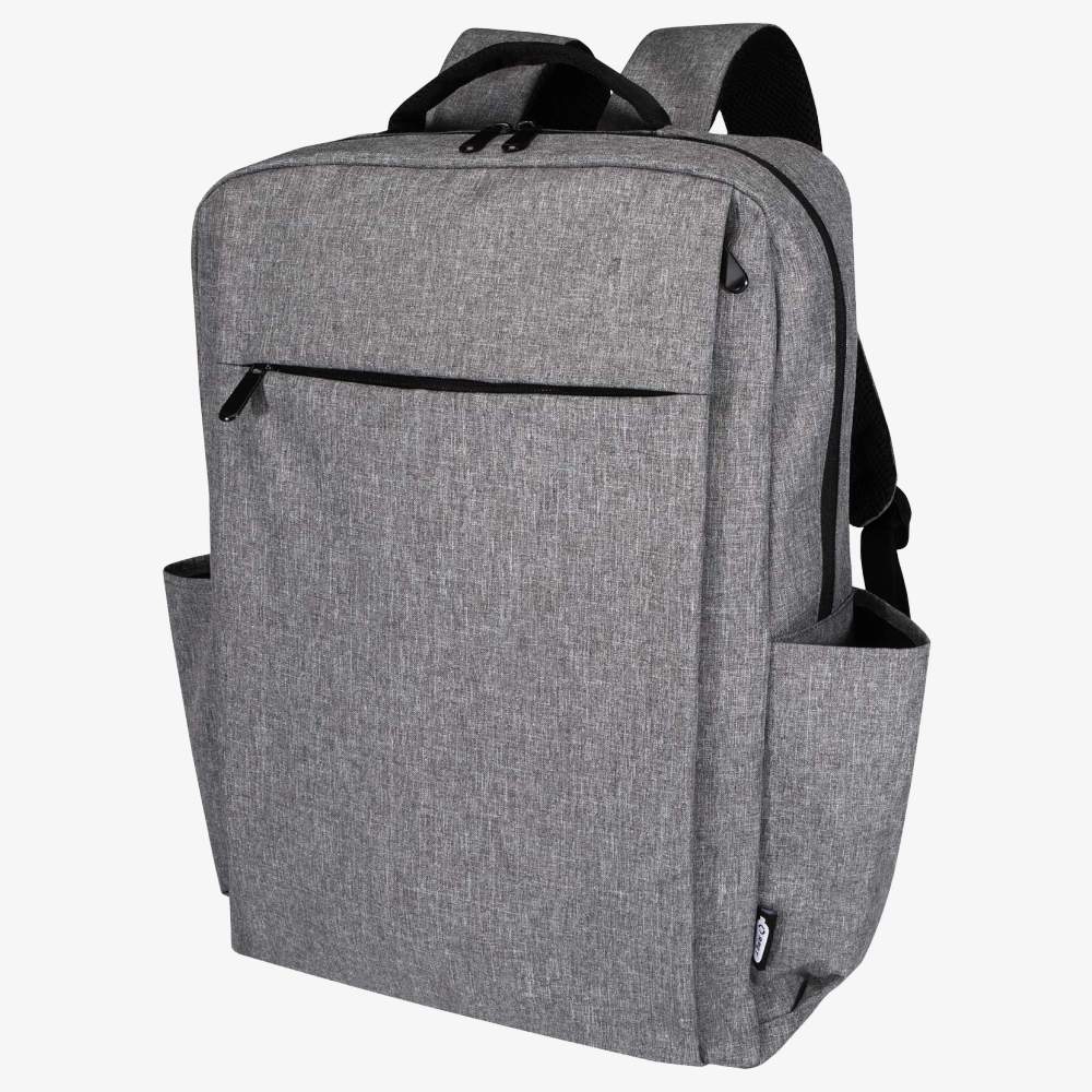 Backpack designed to carry a laptop up to 15 inches, made from recycled polyester. It offers organized storage space with a main compartment, a dedicated padded laptop pocket, and a tablet pocket. Internal and external organization pockets for accessories and personal items. Padded and adjustable straps for comfortable carrying, and a trolley strap on the back for easy transport on luggage. This backpack is suitable for daily, professional use or travel. Its 15-liter capacity allows you to take the essentials.