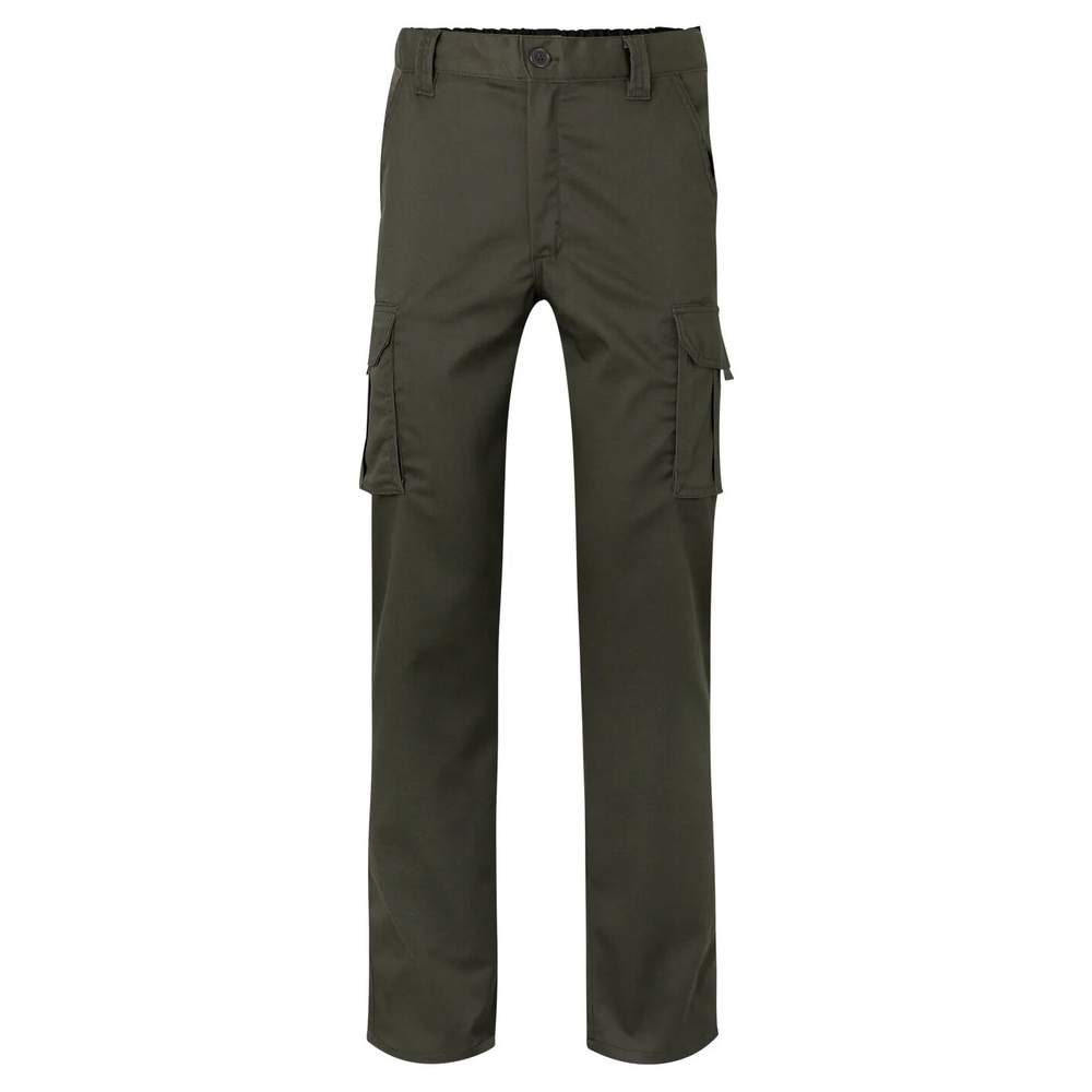 Stretch multi-pocket pants designed to combine comfort and functionality. It features a button closure with zip fly and contrasting, reinforced seams. Its elasticated waist ensures a comfortable fit. It offers optimal storage capacity thanks to its six pockets: two front pockets, two pockets with double-flap closure, hook-and-loop tape and sliders, as well as two reinforced back pockets, with flap and hook-and-loop tape.