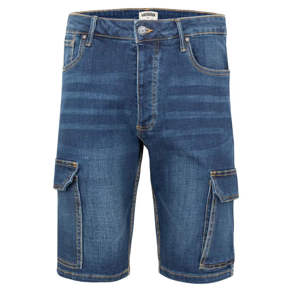 This stretch denim multipocket Bermuda offers a combination of comfort and functionality. Its slim fit combined with elastane ensures good freedom of movement. The zip closure with button and metal rivets reinforce its durability. It features eight pockets: two front pockets, a watch pocket, a flap pocket with snap button on the right leg, two back flap pockets, a tool pocket on the right leg and a flap pocket on it. The double safety stitching ensures increased robustness.