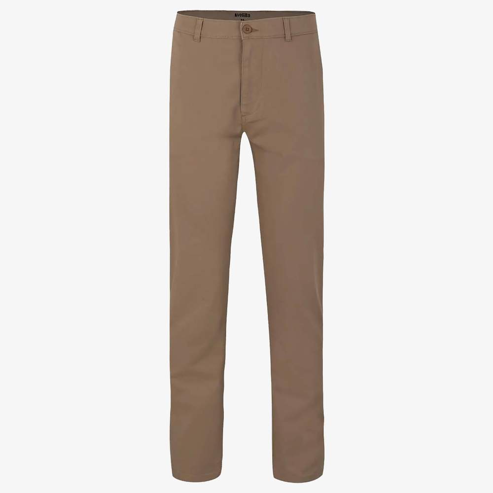 Stretch chino trousers, designed for everyday comfort. It features a zipper with a button, as well as back pleats for a neat silhouette. It has five pockets: two side pockets, two back pockets, and a practical ticket pocket. This trousers is made from a composition of 97% cotton 3% elastane.