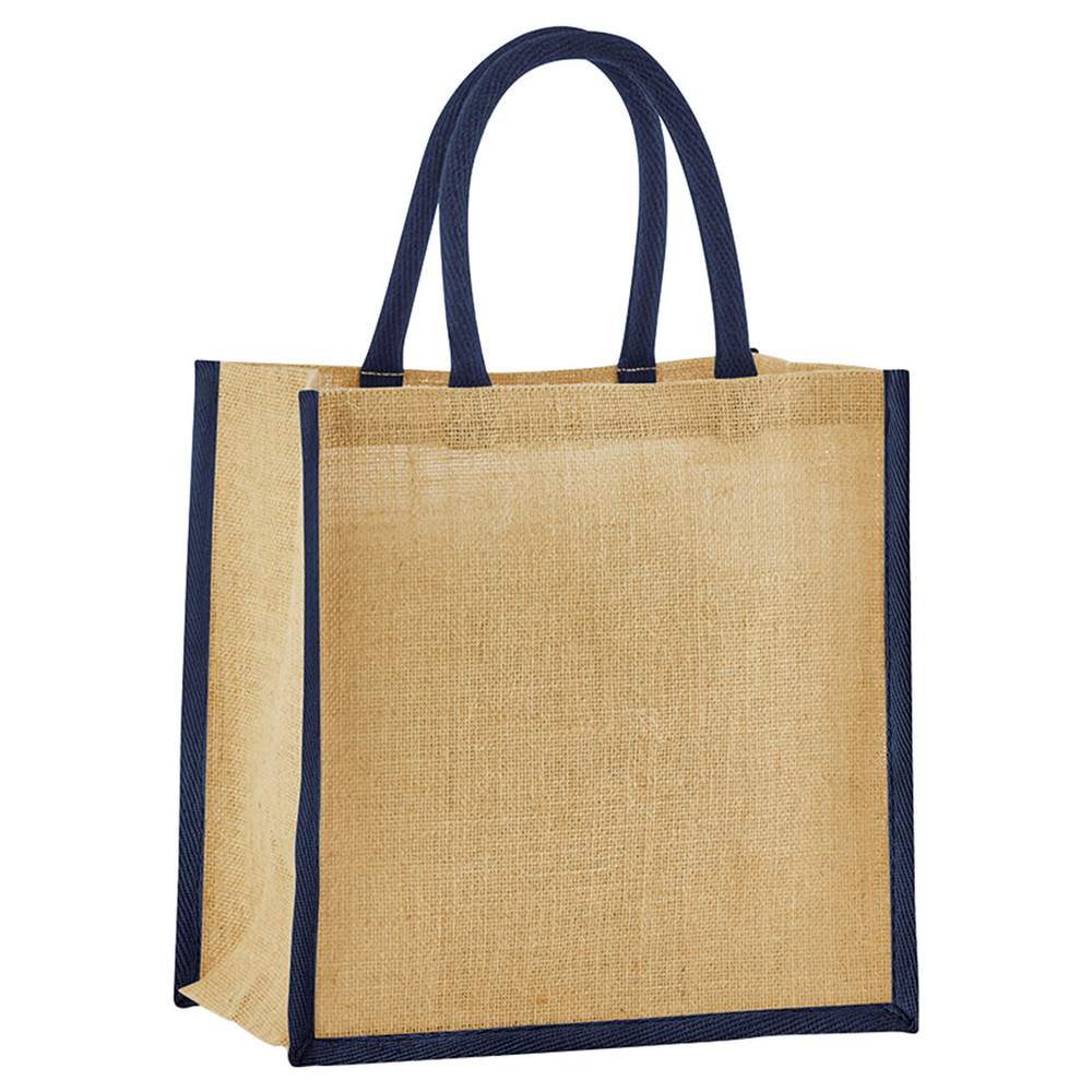 This naturally stiffened jute market bag features a robust construction for orderly storage. The fabric is soft to the touch and offers a raw appearance while remaining durable. Its dimensions are 26 x 22 x 14cm.