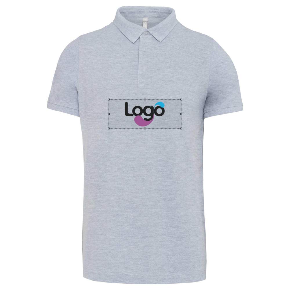 Short-sleeved button-down polo shirt for men. Model with button-down collar and ribbed trim. Three-button placket. Ribbed trim at sleeve hem. Side vents. Double-needle hem finish. Solid colors: 100% cotton. Heather colors: 90% cotton / 10% viscose. Knit in combed cotton. Possibility of customization with embroidery for unique branding. Classic fit. Ribbed collar. Three-button placket. Ribbed trim at sleeve hem. Side vents. Double-needle hem finish. Fabric: 100% cotton or 90% cotton / 10% viscose (depending on color)
