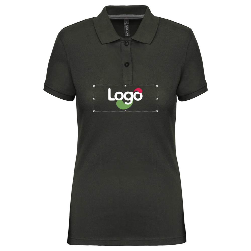 Short-sleeved polo shirt for women, designed for optimal comfort and adapted for professional use. Two-button placket in a single color for a neat finish. Ribbed collar with contrasting band for more comfort and style. Ribbed cuffs for a fitted hold. Side slits with contrasting band for increased freedom of movement. Double-needle hem for enhanced durability. This polo offers an excellent base for adding your logo or visual by embroidery, allowing complete customization to meet your specific needs.