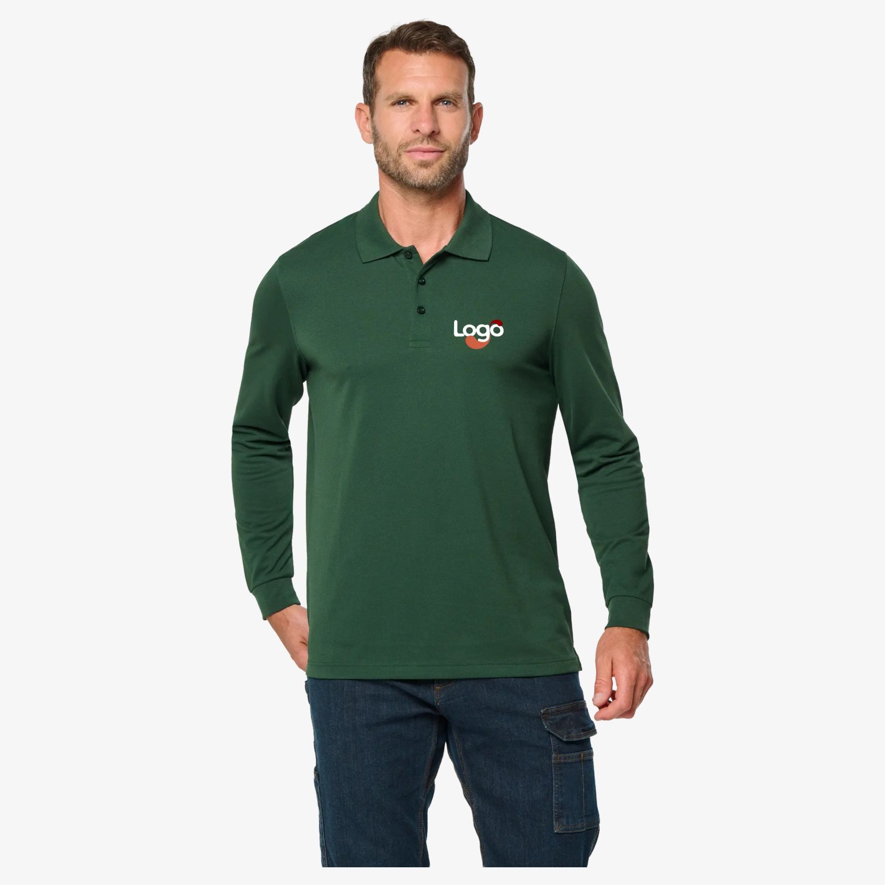 Long-sleeve polo shirt for men ideal for professional use. Button-down collar with three buttons in a tone-on-tone color. Collar with contrasting edging and clean band. Edging finish at the bottom of sleeves. Side slits with contrasting bands for more comfort. Double-needle hem finish at the bottom of garment. Possibility of personalization with embroidery for unique marking of your logo or design.