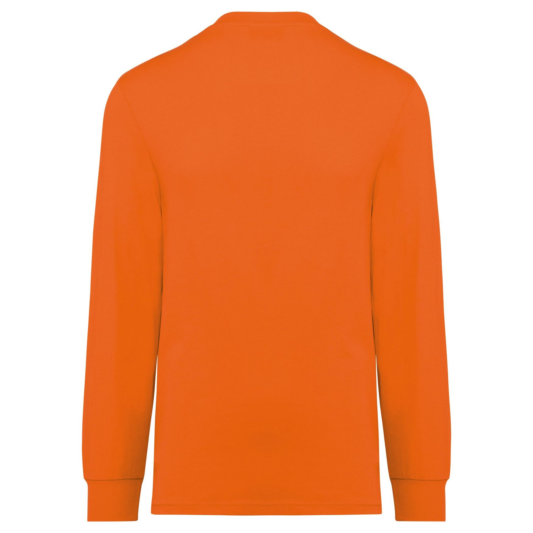 Unisex eco-friendly long-sleeved t-shirt. Classic straight fit for optimal comfort. Round neckline with 2x1 ribbing and elastane, orange neatness band on solid and heathered colors, tone-on-tone on fluorescent colors. Hem finished with double stitching. Tear Away brand tag.