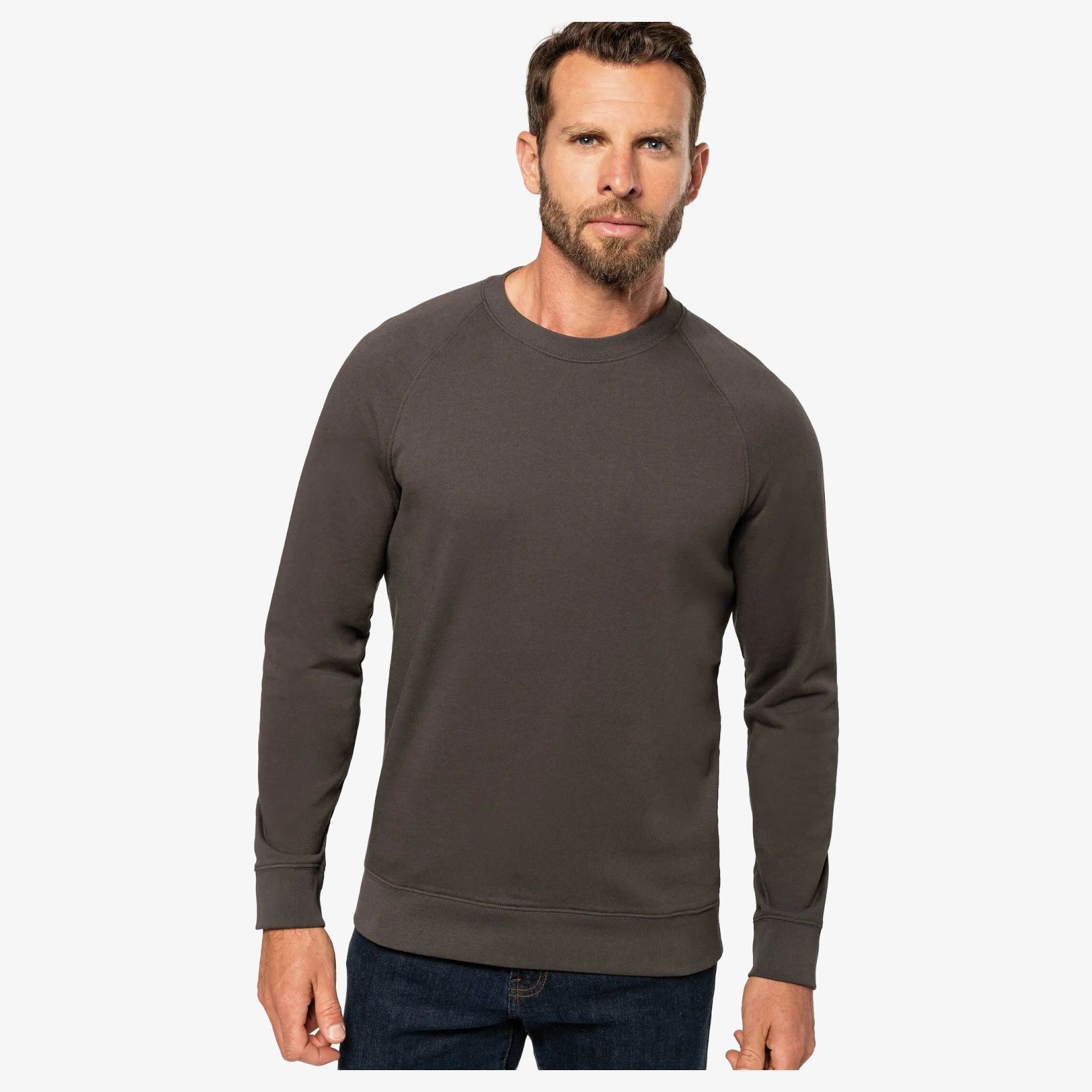 Rounded neck sweatshirt. Straight fit. Raglan sleeve. Clean finish on the inside of the collar with chevron pattern tone-on-tone. Rounded neckline. Tubular 1x1 ribbing for better finishing at the collar, cuffs and hem. Half-moon gusset in the collar. Cotton labels.