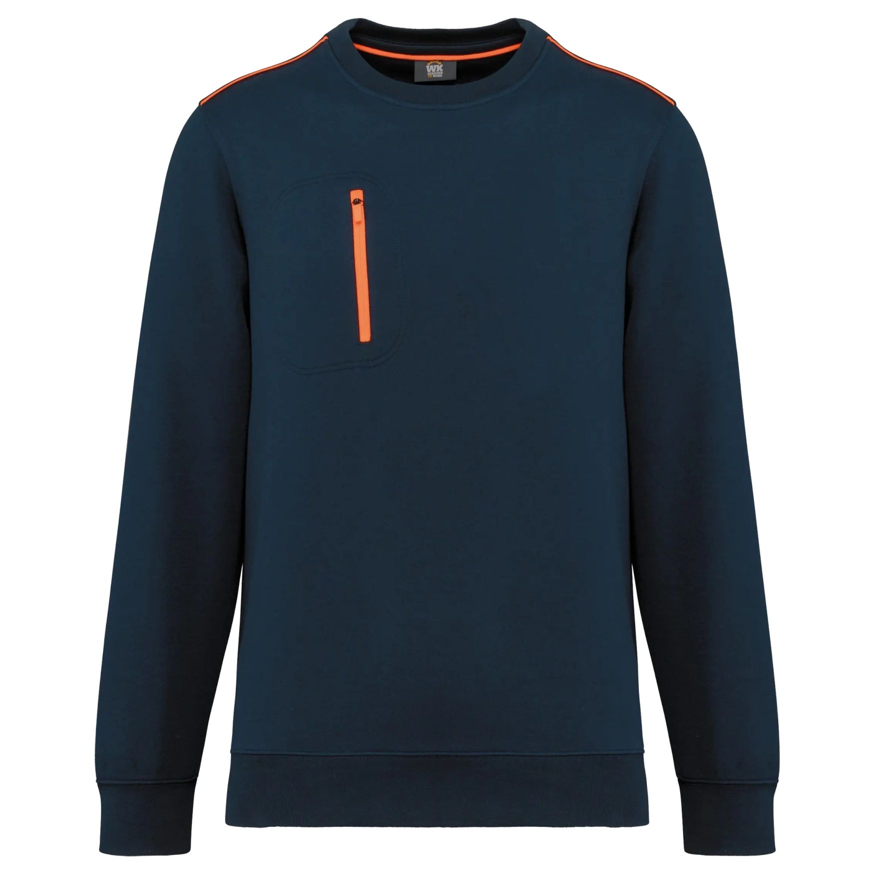 Hoodie with zipped chest pocket. Fitted cut. Round neck with ton-on-ton ribbing and contrasting piped band. Half-moon finish at the back of the neck for easier customization. Contrasting piping on shoulders. Right-side chest pocket with contrasting zip and puller. Double-needle stitching around the edge of the pocket. 3-ply brushed fleece LSF. Vortex yarn. Tear Away brand label.