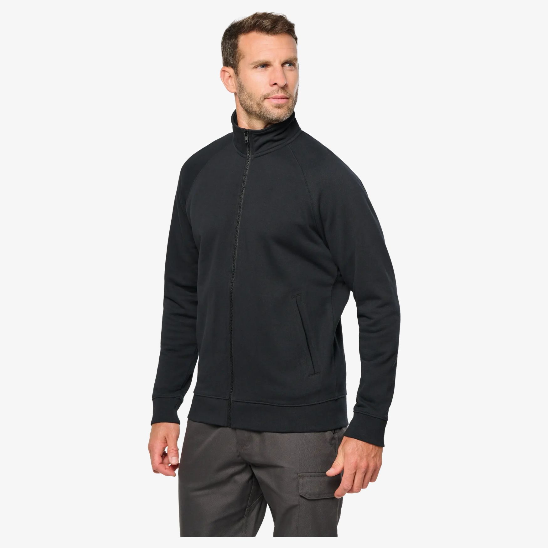 The Veste Molleton Coton Manches Raglan Unisexe is suitable for everyday use with a fitted cut, raglan sleeves and two side pockets. Unbrushed sweatshirt fabric. Composition: 100% cotton, except Oxford Grey (90% cotton, 10% viscose).