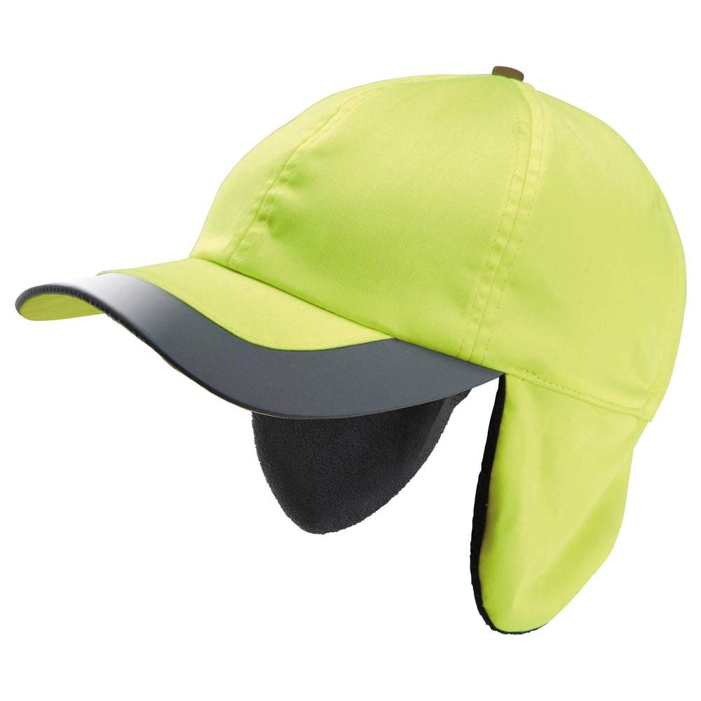 Fluorescent winter cap designed to provide increased visibility in low light conditions. This 6-panel model includes foldable ear flaps for enhanced protection against the cold. The polar fleece interior ensures optimal thermal comfort. The rear adjustable closure with cord and stoppers allows for personalized adjustment. This cap is designed to meet the needs of those looking for a practical and functional accessory for winter.