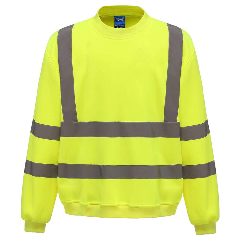 This high visibility sweatshirt offers good visibility in low light conditions. It features a clean neckband, set-in sleeves, and ribbed cuffs and hems. It includes two 5 cm wide reflective strips around the body, arms, and one on each shoulder. The finishes are made with double-needle stitching for increased durability.