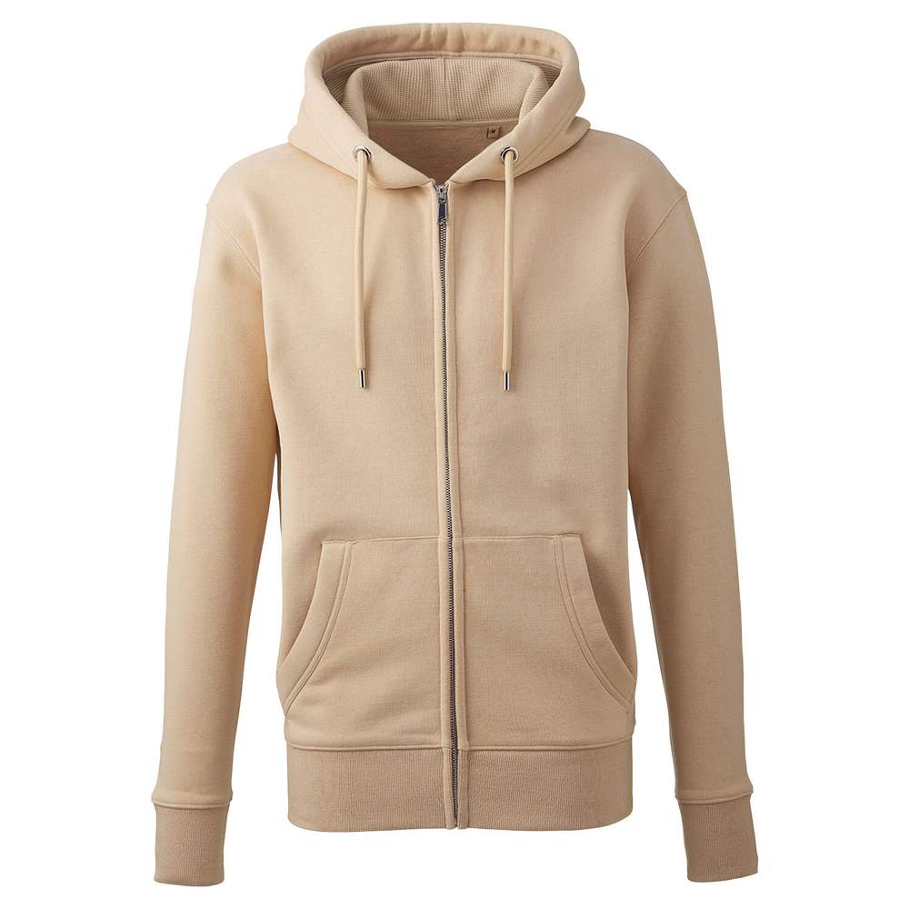 Sudadera con cremallera para hombre en tejido de piel de melocotón suave al tacto. Capucha de punto acanalado. Cierre con cremallera y cordones de ajuste sin níquel. Interior de felpa rasurada. Terminaciones a doble puntada de alta calidad. Puños acanalados recortados y cosidos dos en uno. Bolsillos tipo canguro. Etiqueta de tamaño del mismo color.