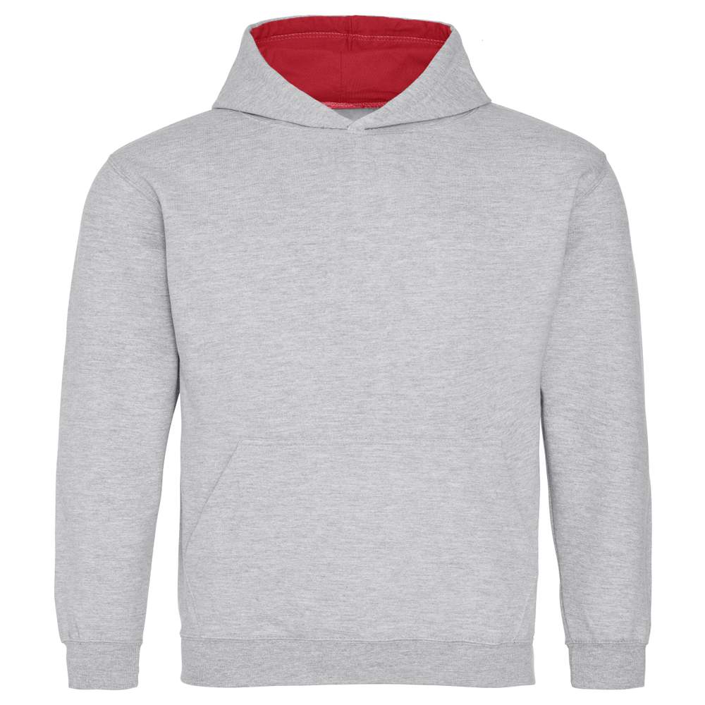 Sudadera con capucha contrastada para niños. Sin cordón según la nueva legislación europea. Bolsillo kanguro. El bolsillo incluye aberturas para un cable de auriculares.Composición: 80% algodón, 20% poliéster.