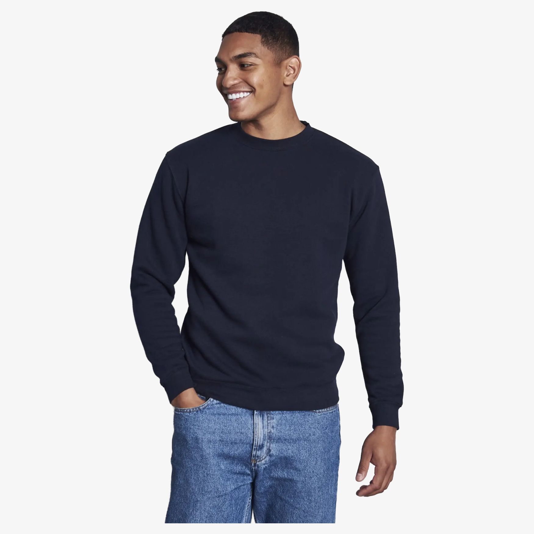 Esta sudadera presenta un interior moldeado y una superficie lisa de algodón orgánico. Cuello redondo. Mangas montadas. Bajo doble costura. Puños, bajo de cintura y cuello en punto elástico. Etiqueta desmontable. Composición: 80% algodón orgánico, 20% poliéster reciclado (excepto color Heather_grey: 75% algodón orgánico, 25% poliéster reciclado).
