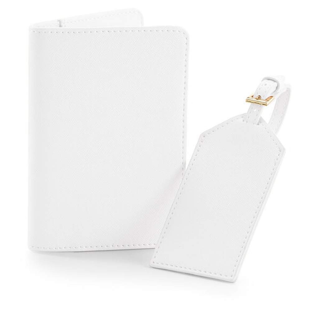 Conjunto de accesorios diseñado para facilitar la organización de los viajes. Este kit incluye una etiqueta de identificación y una funda destinada a alojar un pasaporte. El conjunto se distingue por un borde dorado para un aspecto refinado y una etiqueta TearAway para una identificación fácil. Las dimensiones de la funda para el pasaporte son de 10,5 x 15,5 cm, mientras que las de la etiqueta son de 6 x 11,5 cm. La composición del conjunto es de 100% poliuretano con un grano fino Saffiano.