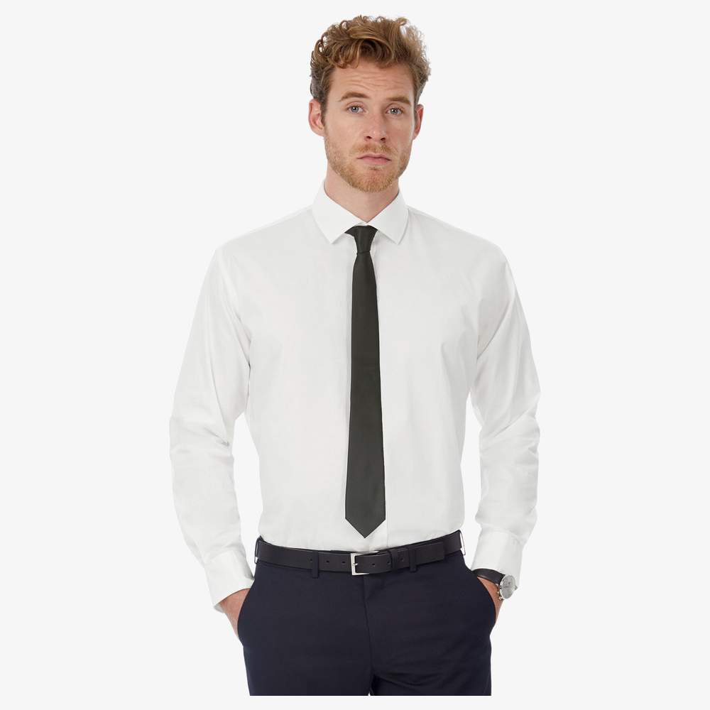 Esta camisa para hombre ofrece un corte ajustado y un confort óptimo gracias a su composición de algodón elástico. Presenta un cuello italiano semiabierto con dos botones y ballenas no extraíbles, así como botones nacarados a juego cosidos en cruz. La última botonera es horizontal y pinzas en la parte trasera aseguran un corte contemporáneo. Las muñecas ajustables con dos botones permiten un ajuste personalizado y están equipadas con botoneras adicionales para añadir botones de puño. La base redondeada está reforzada con cuadrados en los lados y dos botones de repuesto están incluidos. El material popelín elástico ofrece un tacto suave y cómodo.