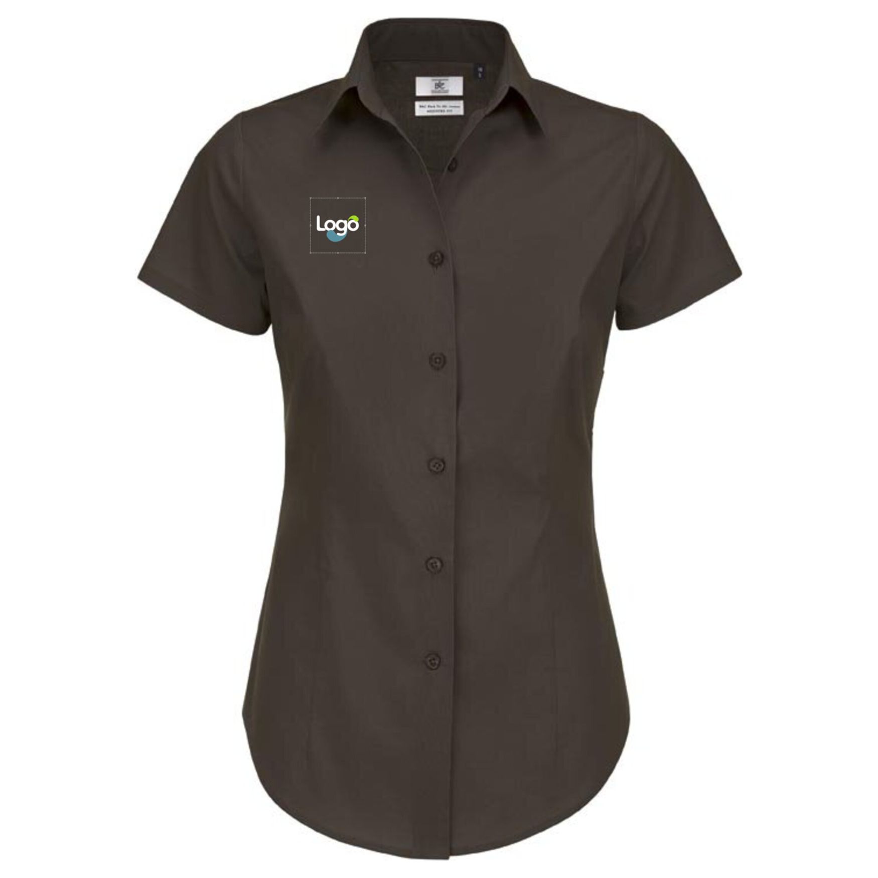 Camiseta de mujer en algodón estirado con corte ajustado y cuello femenino. Está confeccionada con 97% algodón peinado y 3% elasthanne, ofreciendo comodidad y flexibilidad. Las pinzas en el nivel del pecho, en la parte delantera y trasera, aseguran una silueta favorecedora. Los botones nacarados a juego están cosidos en cruz para un acabado refinado. El borde inferior redondeado añade un toque moderno. Se incluye un botón de reserva. Esta camiseta es ideal para una personalización en bordado, permitiendo añadir su logo o su diseño.