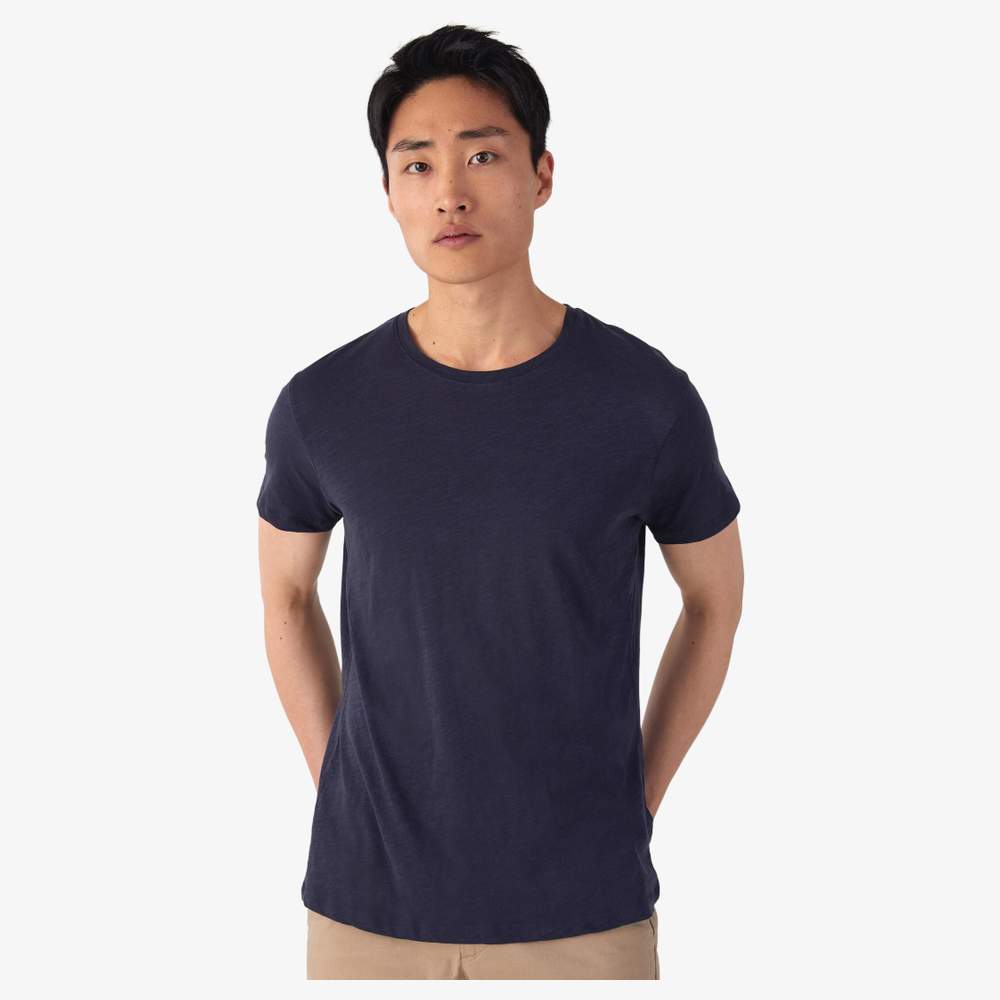 Camiseta de cuello redondo Slub ligero para hombre. Corte ajustado para una silueta ajustada. Mangas cortas para una comodidad óptima. Costuras laterales para una mejor sujeción. Suave al tacto para un mayor confort. Cuello en costura fina para un acabado cuidado. Reforzado de hombro a hombro para una mayor durabilidad. Superficie lisa para una impresión neta y precisa.