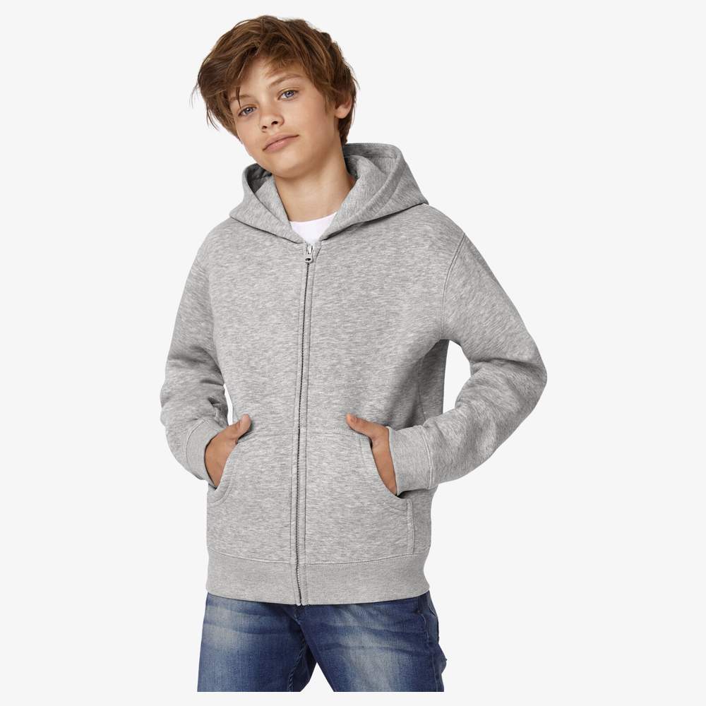 Sweat zippé à capuche pour enfant. Ce vêtement est conçu avec la technologie Perfect Sweat, une maille de haute qualité qui assure confort et durabilité. Il présente une fermeture zippée ton sur ton, agrémentée d'un passepoil décoratif. La capuche à 3 pans est équipée de boucles intérieures pour écouteurs et est doublée en Single Jersey. Une bande de propreté en twill est présente dans l'encolure. Le sweat dispose de deux poches avant avec couture renforcée et d'une poche intérieure droite avec passant pour câbles d'écouteurs. Les surpiqûres plates aux épaules et aux emmanchures renforcent la résistance du vêtement. Les poignets et la base sont en côte 1x1. Coutures latérales.