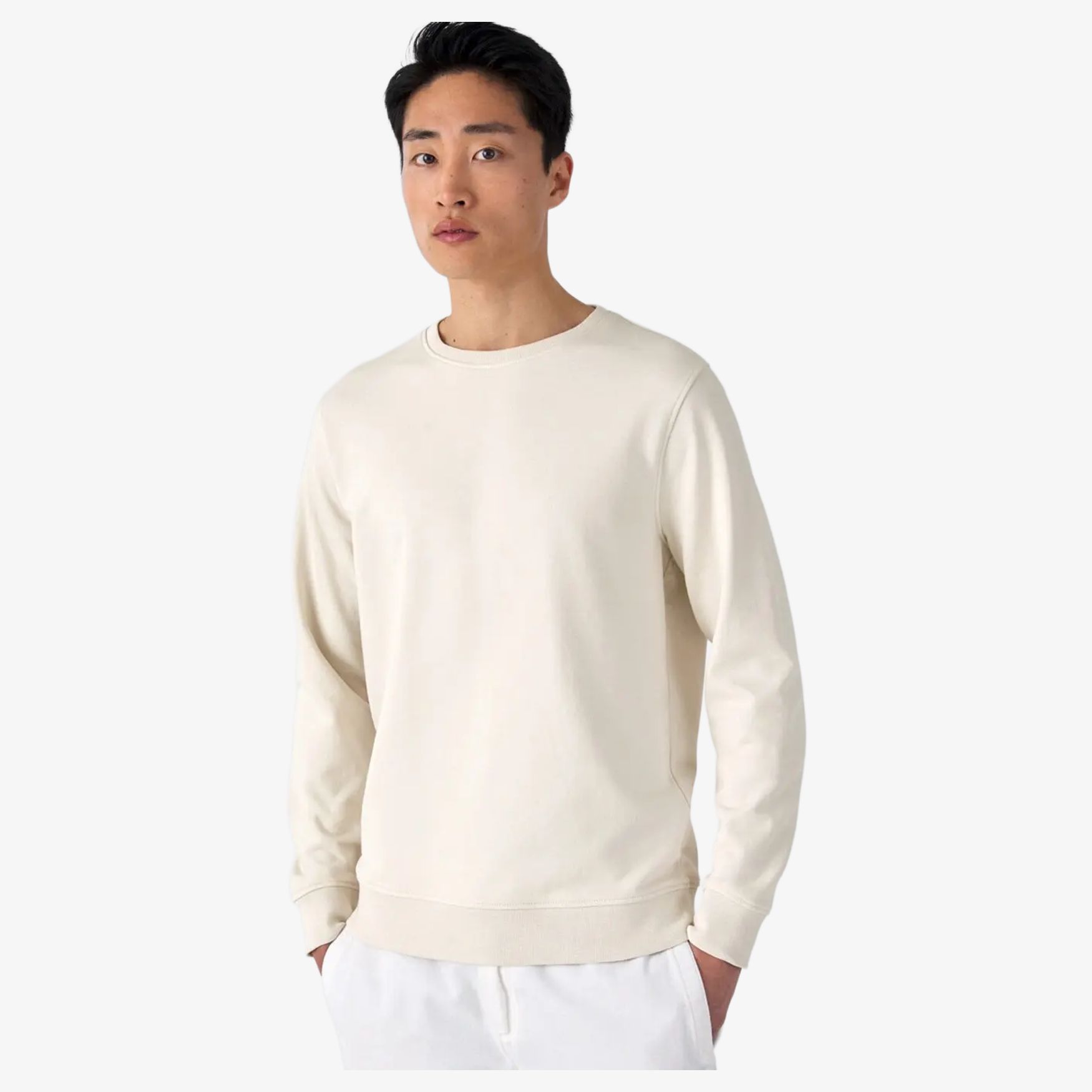 Sudadera de cuello redondo en algodón orgánico certificado, ofreciendo confort y durabilidad para un uso diario. El interior sin rascar asegura una sensación suave sobre la piel. Este modelo presenta un corte clásico con mangas rectas y costuras laterales para una mejor sujeción. El cuello, las muñecas y la cintura están reforzados por ribetes de punto, asegurando una forma duradera y un ajuste cómodo. La banda de limpieza en chevron añade un toque de acabado cuidado. Esta sudadera está diseñada para un confort óptimo y una larga duración.