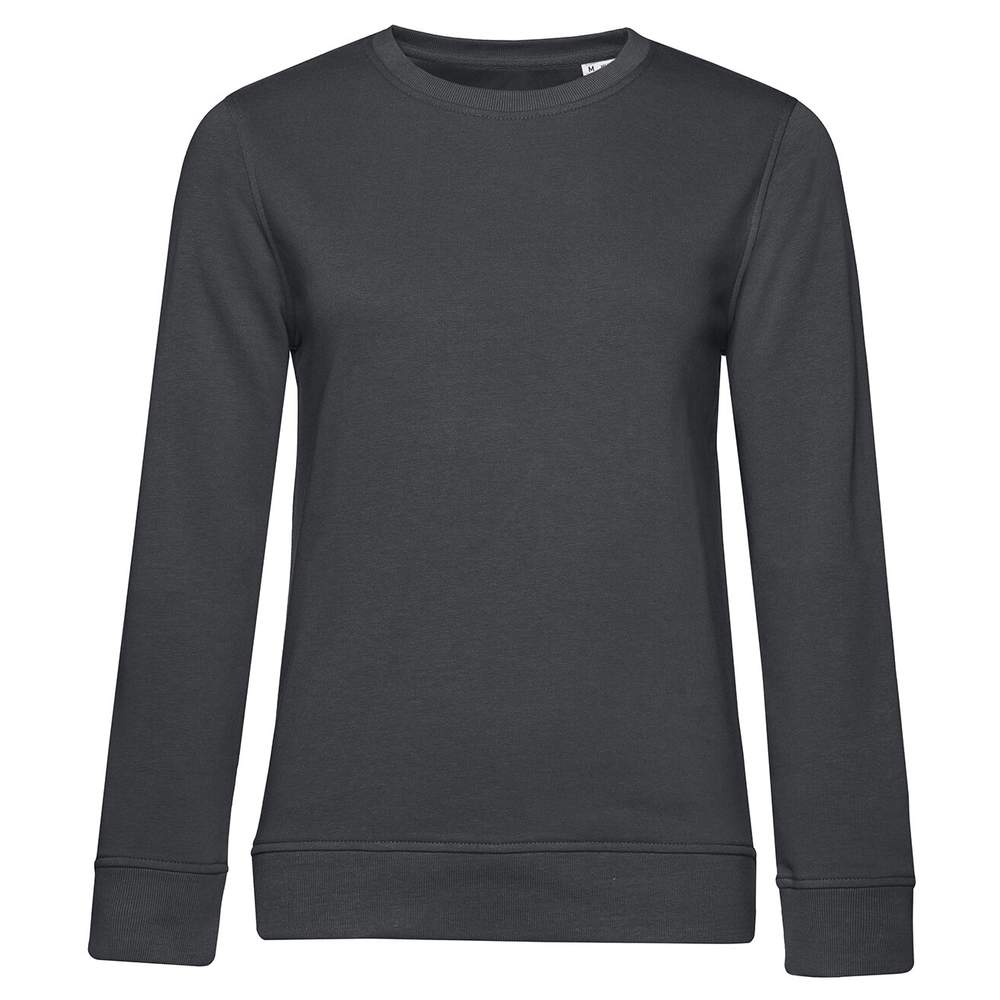Sudadera cuello redondo de algodon organico o en conversion para mujer. French Terry : interior no raspado. Sin etiqueta de marca. Etiqueta visible en el cuello « Hi! I'm Organic ». Costuras laterales. Corte femenino.
