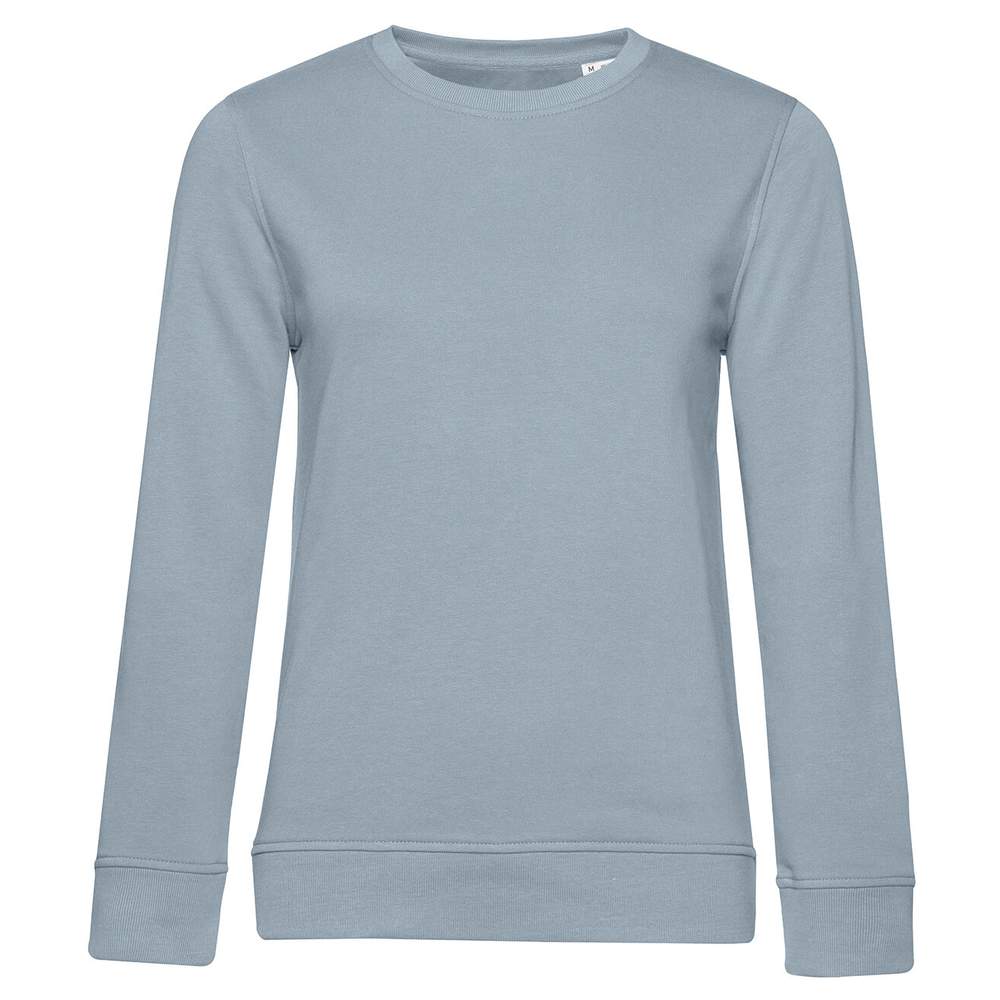 Sudadera cuello redondo de algodon organico o en conversion para mujer. French Terry : interior no raspado. Sin etiqueta de marca. Etiqueta visible en el cuello « Hi! I'm Organic ». Costuras laterales. Corte femenino.