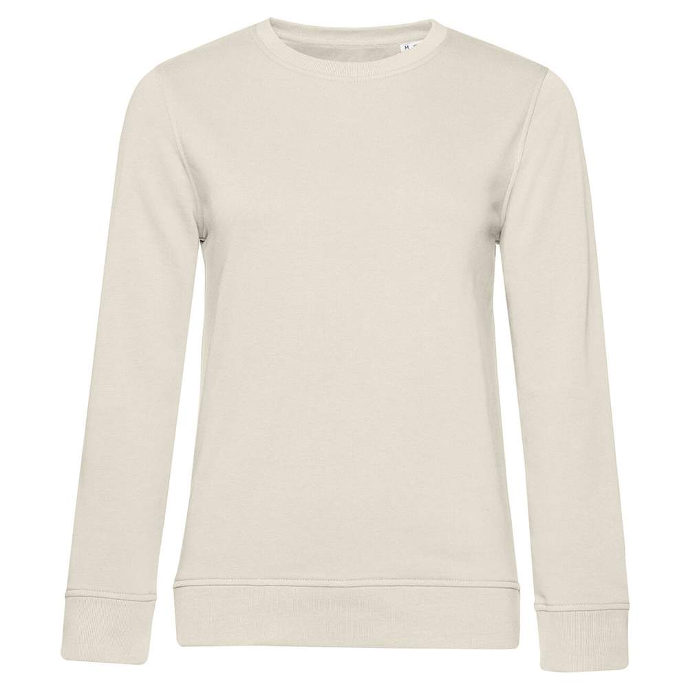 Sudadera cuello redondo de algodon organico o en conversion para mujer. French Terry : interior no raspado. Sin etiqueta de marca. Etiqueta visible en el cuello « Hi! I'm Organic ». Costuras laterales. Corte femenino.
