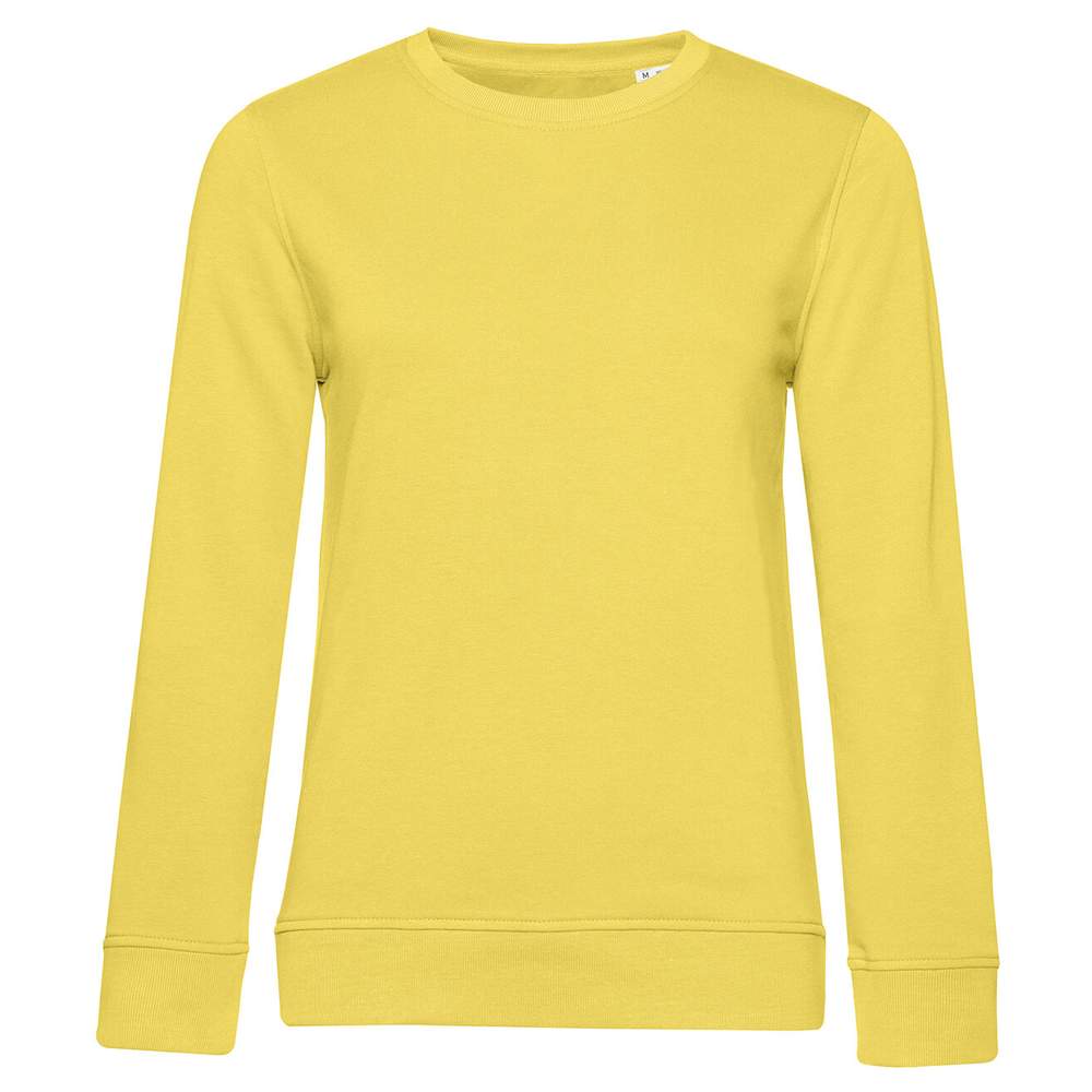 Sudadera cuello redondo de algodon organico o en conversion para mujer. French Terry : interior no raspado. Sin etiqueta de marca. Etiqueta visible en el cuello « Hi! I'm Organic ». Costuras laterales. Corte femenino.