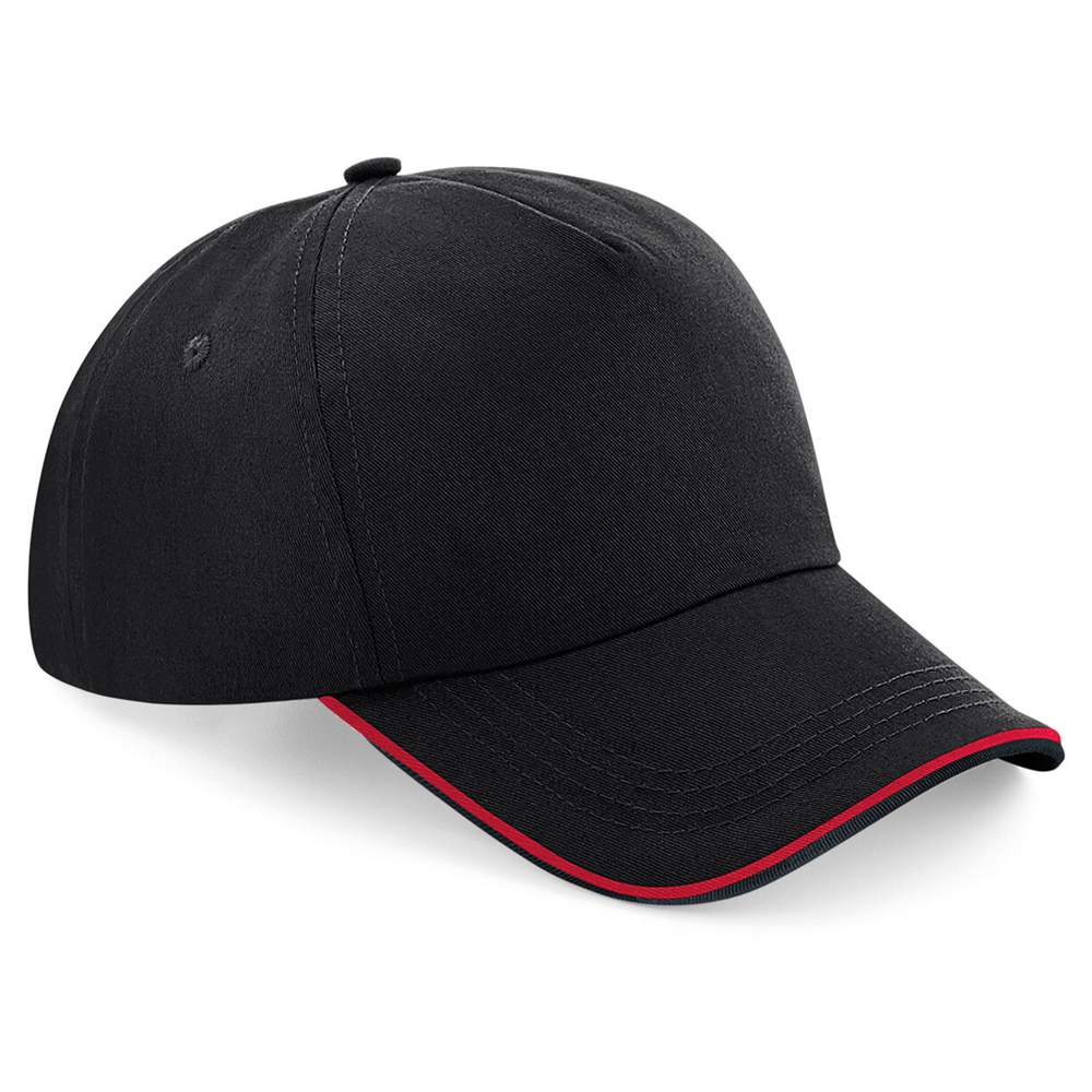 Esta gorra Beechfield de cinco paneles está diseñada con una estructura bien definida y una visera precurvada. Posee un borde de pico pasamanerado de color contrastante y agujeros de ventilación bordados para una mejor ventilación. El tamaño único es ajustable gracias a una correa con hebilla. La etiqueta se desprende fácilmente. Fabricada a partir de 100% sergé de algodón, ofrece un confort óptimo y una excelente durabilidad. Esta gorra es ideal para la personalización en bordado, permitiendo añadir su logo o diseño.