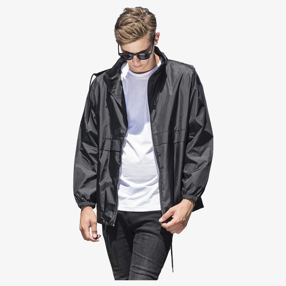 Chaqueta corta de nylon oversize. Presencia de una capucha con cordón ajustable, permitiendo un ajuste personalizado. La capucha puede guardarse en el cuello. Las mangas están dotadas de un puño elástico, asegurando un mantenimiento cómodo. El dobladillo también está equipado con un cordón ajustable para ajustar el corte. Esta chaqueta corta ofrece una alternativa ligera para diferentes condiciones meteorológicas.