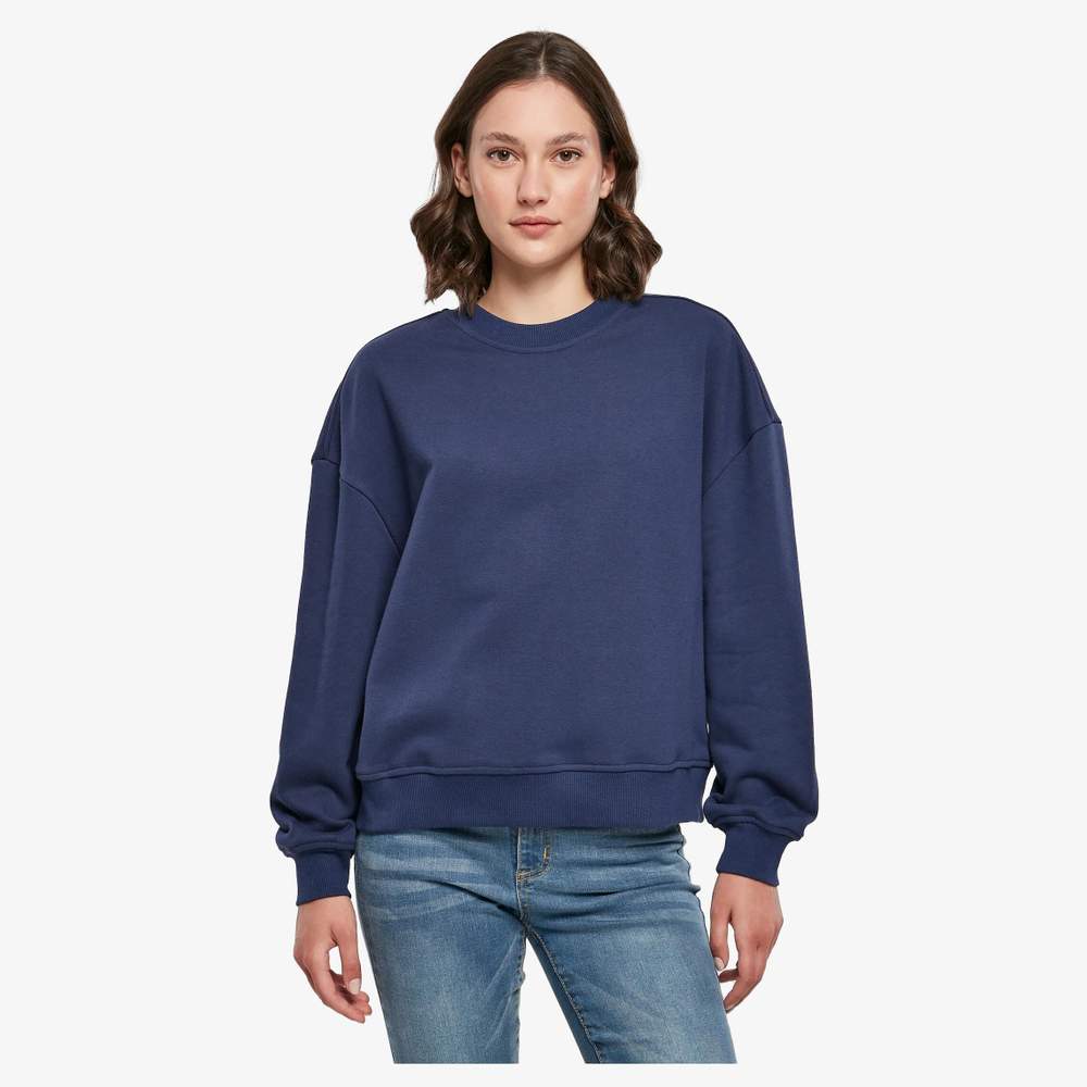 Esta sudadera para mujer ofrece un corte amplio y cómodo, con hombros ligeramente caídos para un estilo relajado. Su composición de algodón y poliéster asegura un confort óptimo. El cuello redondo de punto y las anchas cintas de punto en las muñecas y en la cintura añaden un toque de modernidad. Esta prenda está diseñada para el uso diario y se adapta a diversas ocasiones.