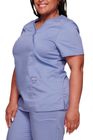 Blusa de trabajo de manga corta para mujer. Cuello en V cache-cœur cruzado. Corte informal, clásico y moderno. Dos bolsillos planos en la parte delantera. Ganchos para instrumentos ocultos. Etiqueta del logotipo con tira elástica. Costuras de hombros delanteras. Ventilaciones laterales. Tela sarga. Posibilidad de personalización con bordado para satisfacer sus necesidades específicas.